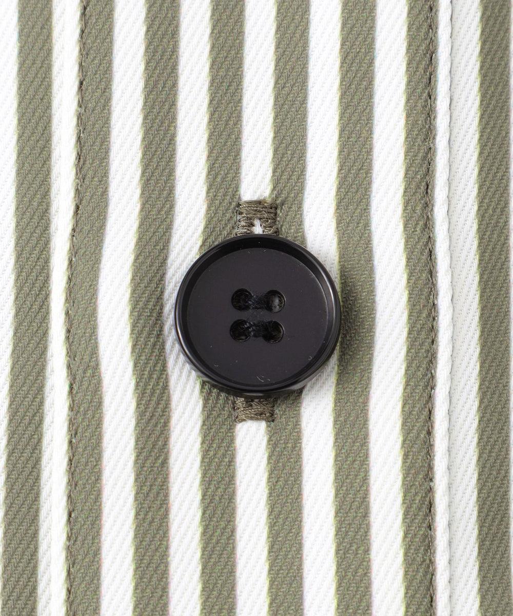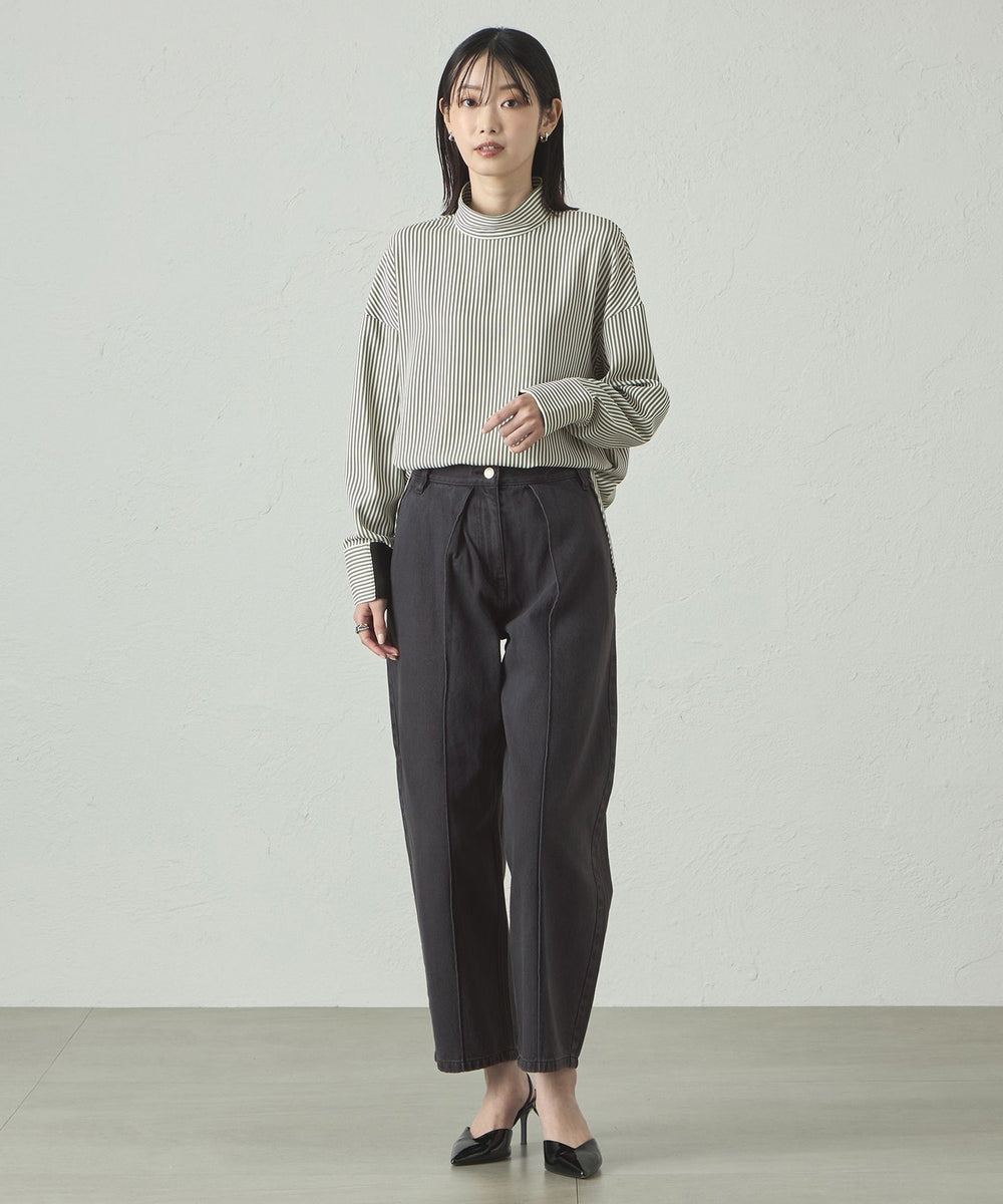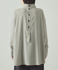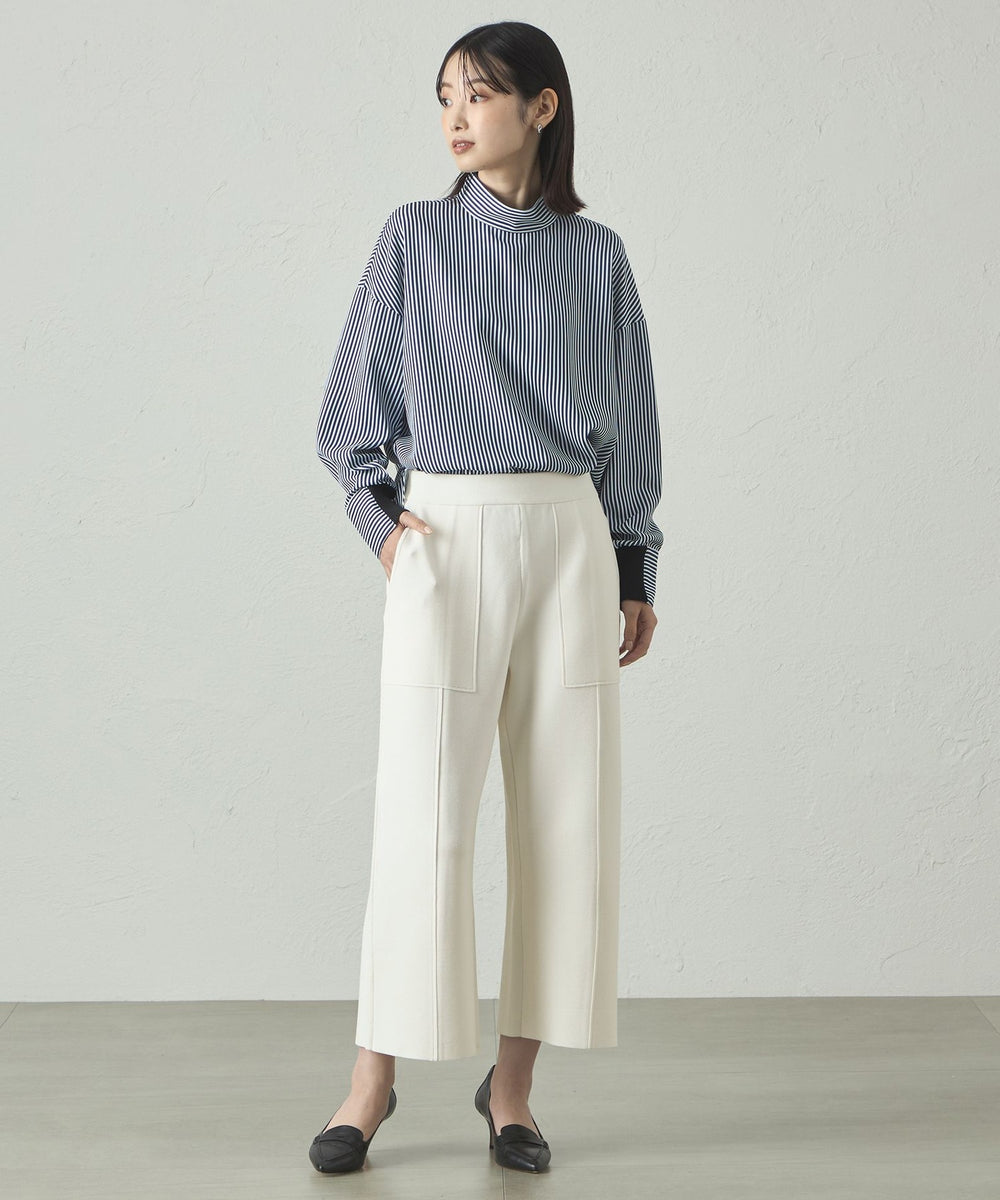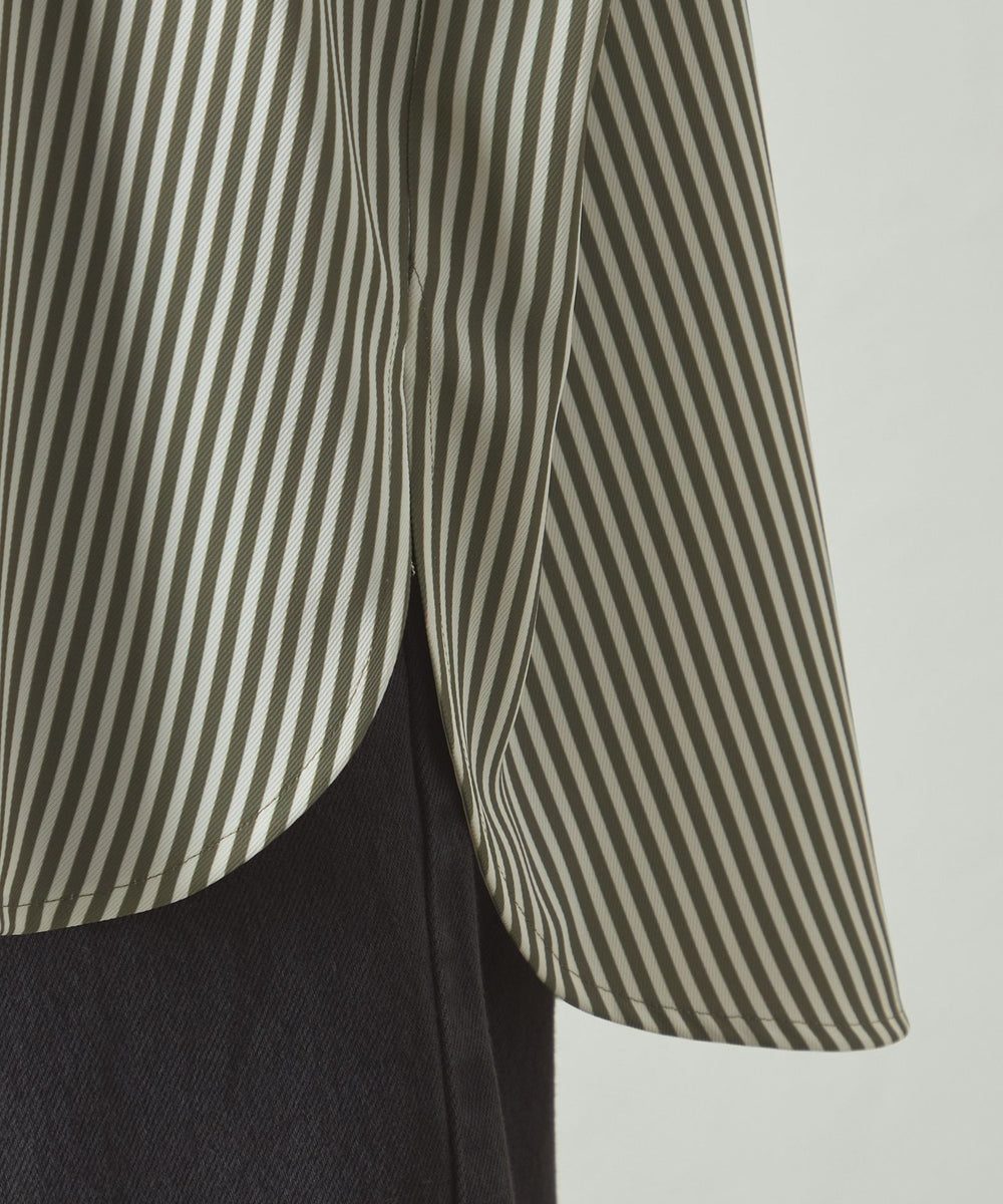 ストライプ柄でシャープな印象がありながらも、体から離れたゆったりシルエットで、ストレスフリーな着心地。袖部分にもニットリブが付いているので、動きやすさがありながら、袖を上げた時にきちんと留まる計算された仕様です。