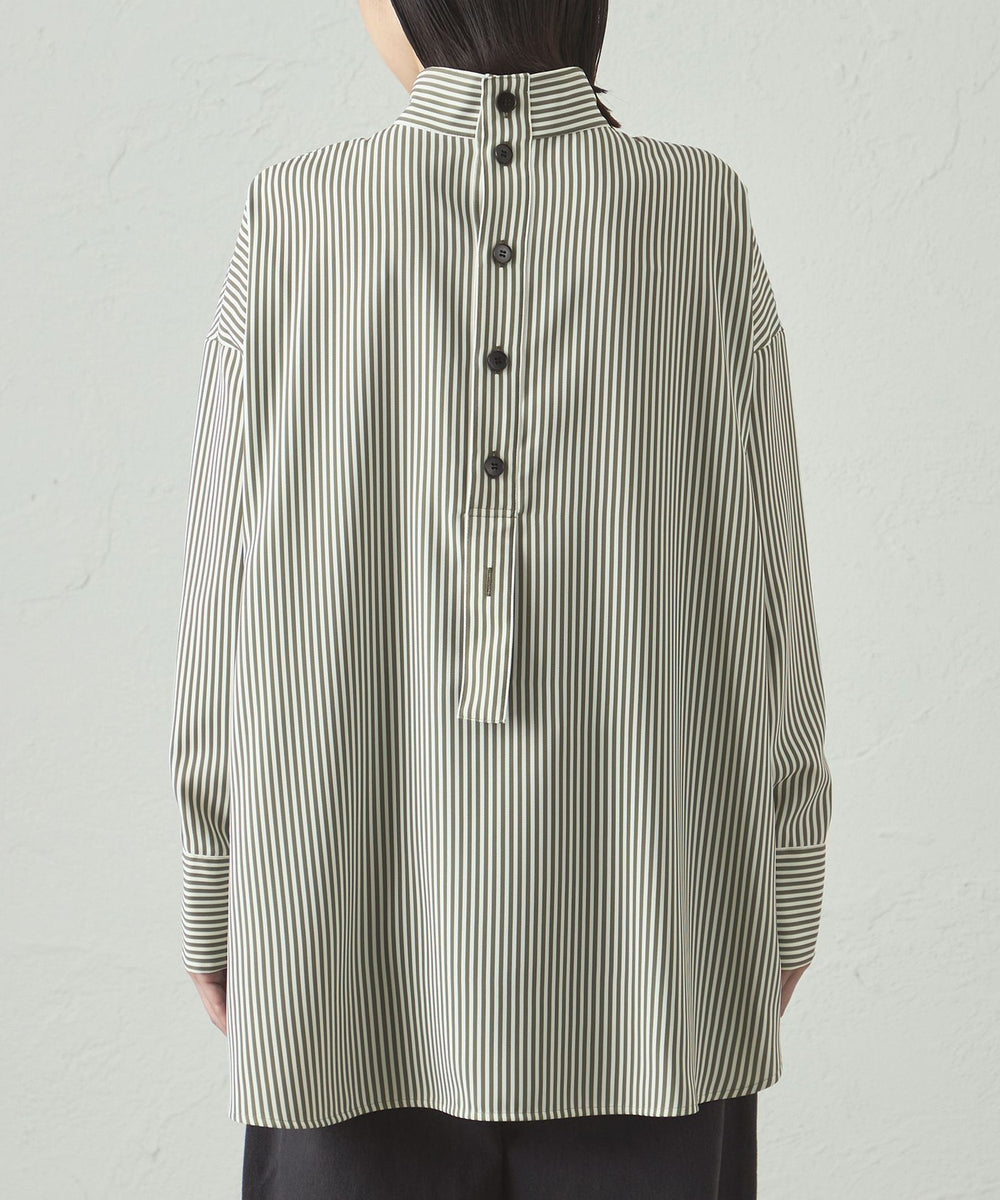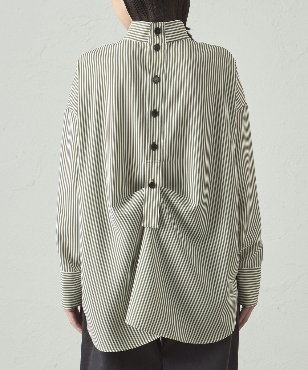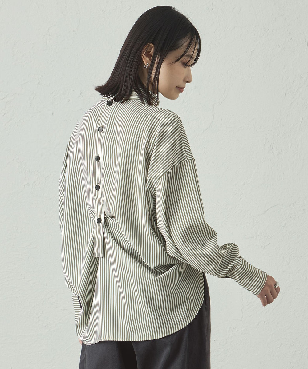 プリントしたストライプ柄を使用した、バックボタンディティールがCAST:らしいデザインブラウス。