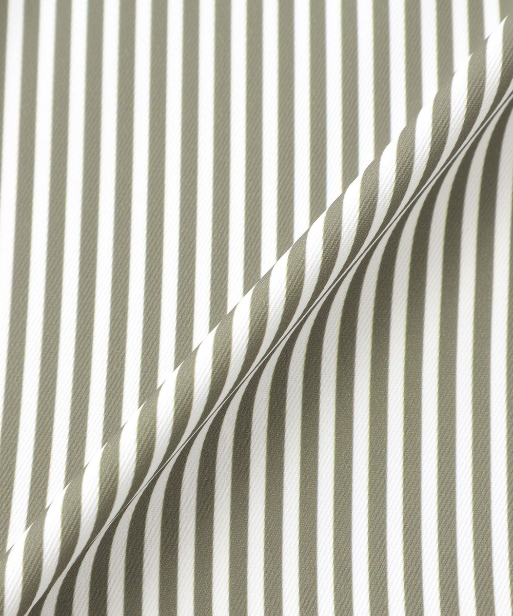 ポリエステル素材にストライプ柄をプリントしています。ハリがありながらも適度なしなやかさのある素材で、シワになりにくいのが特徴。ケアのしやすさも嬉しいポイント。