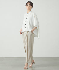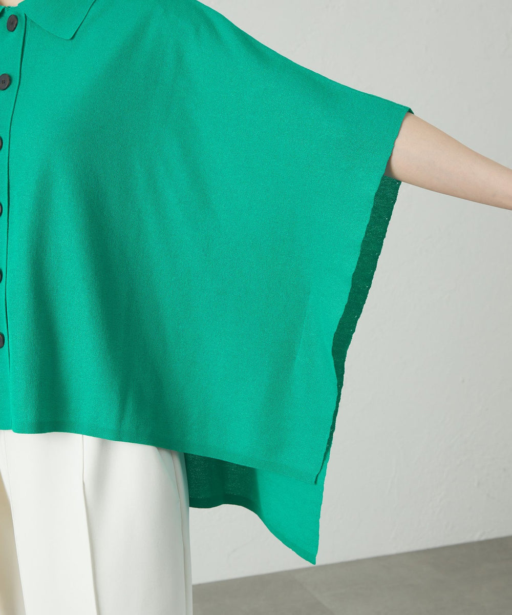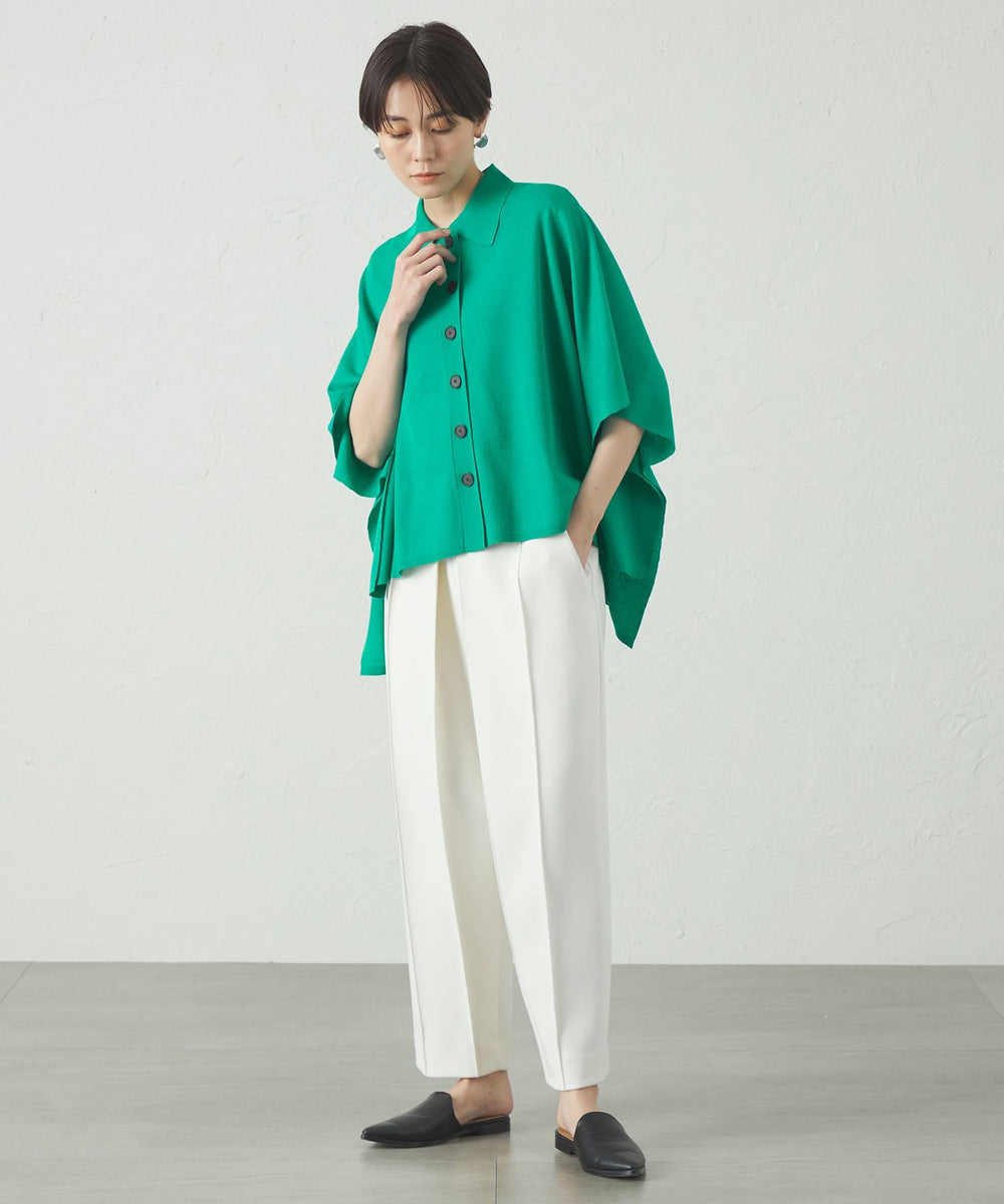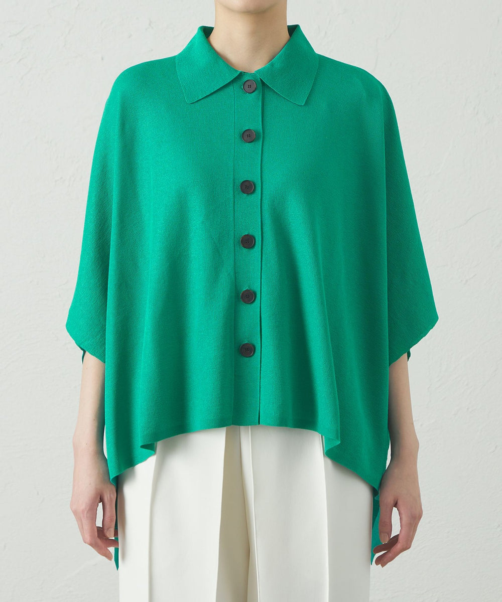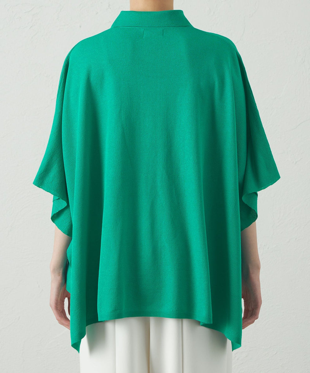 レーヨン・ポリスエテルニット素材の衿付きプルオーバー。
