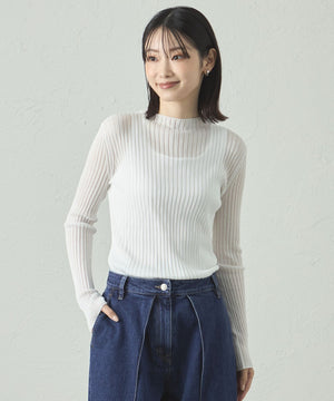 上品な透け感が特徴のシアーニットプルオーバーです。