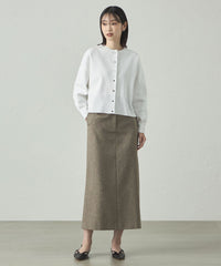 裾に脇スリットが入っているため、カットソーやブラウスをレイヤードして着用するのもおススメです。