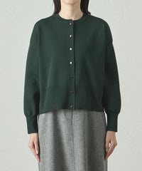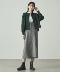 ハリ感のある編地で構築的なシルエットが表現されているので、ジャケットのような役割も担います。