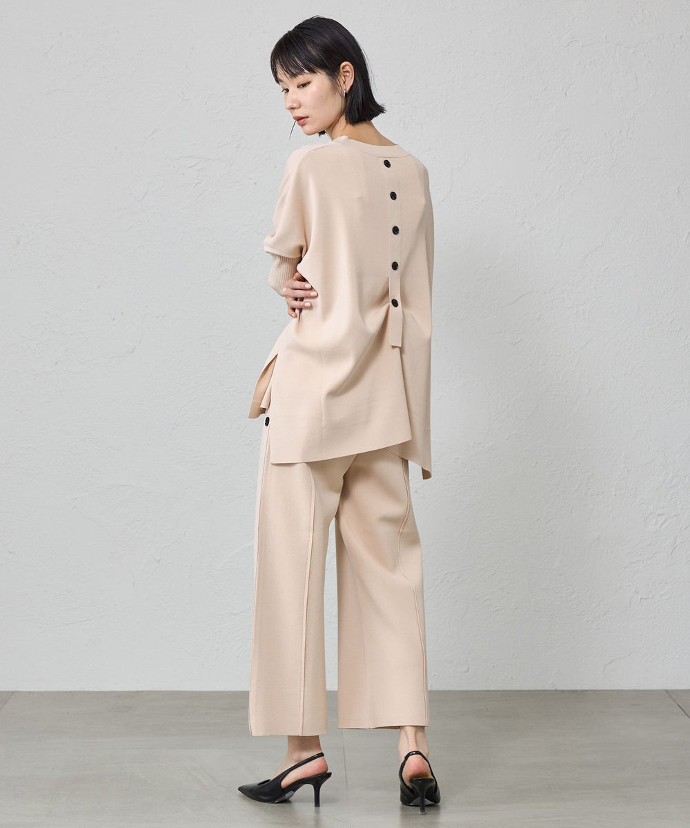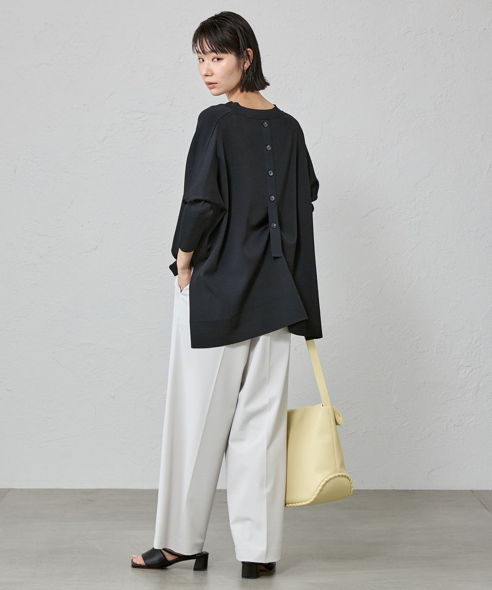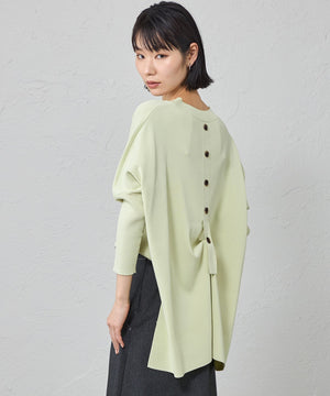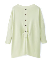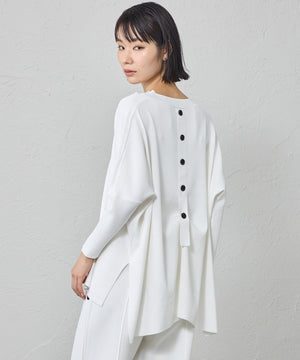 バックスタイルのボタンディテールが目を引くデザインニットプルオーバです。
