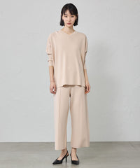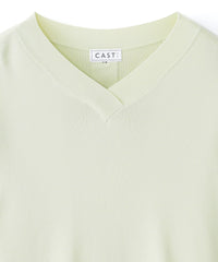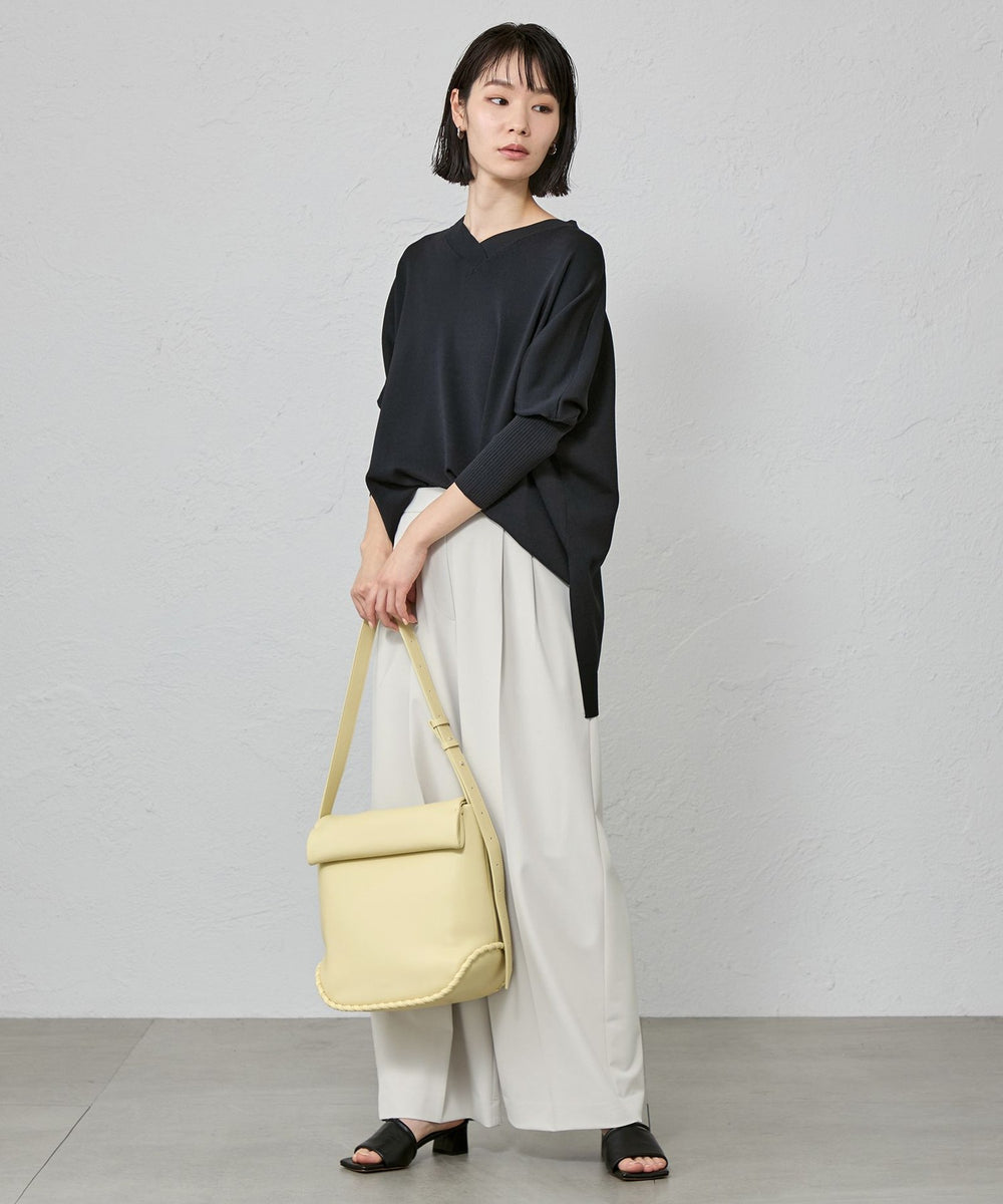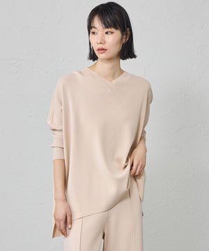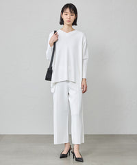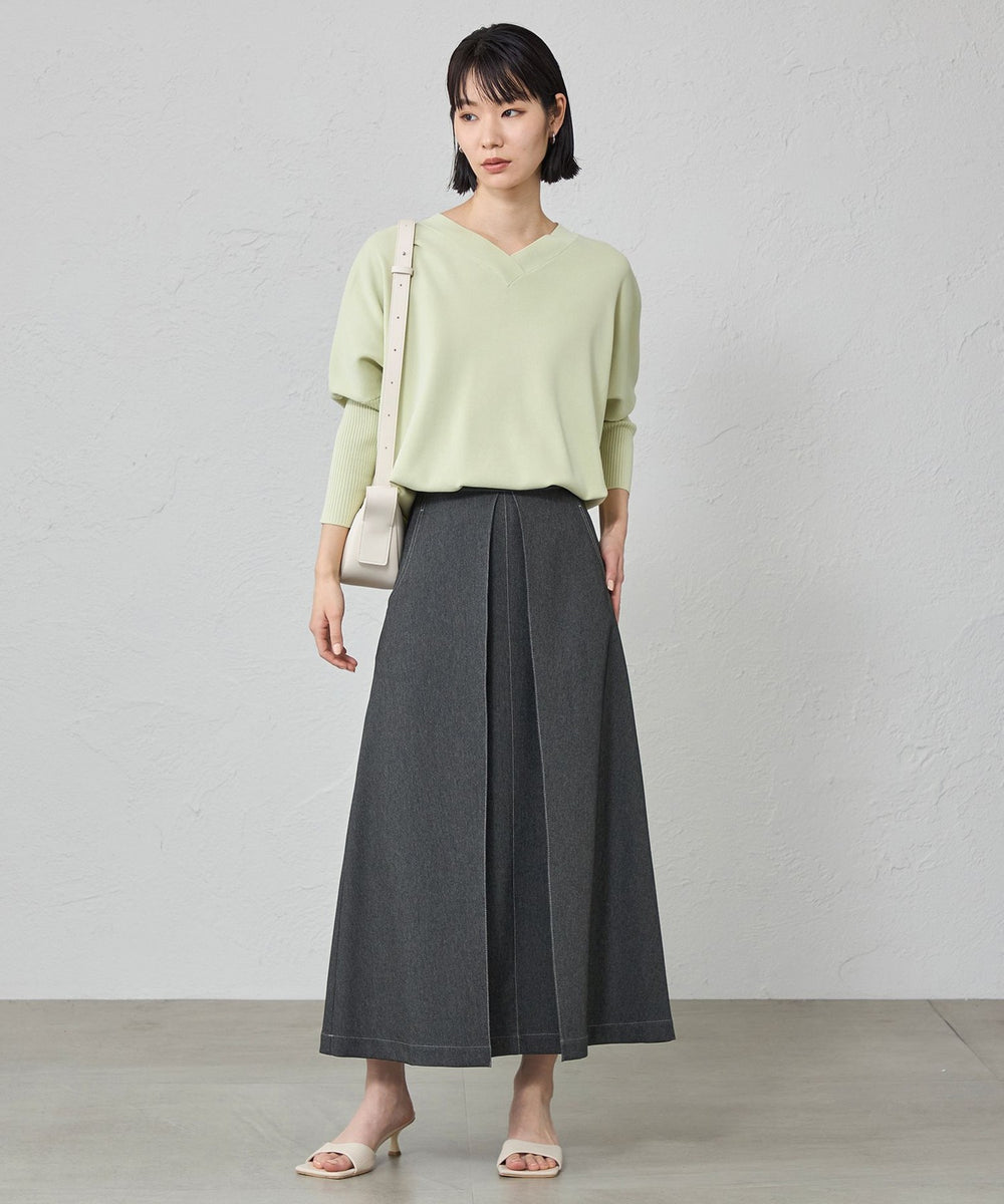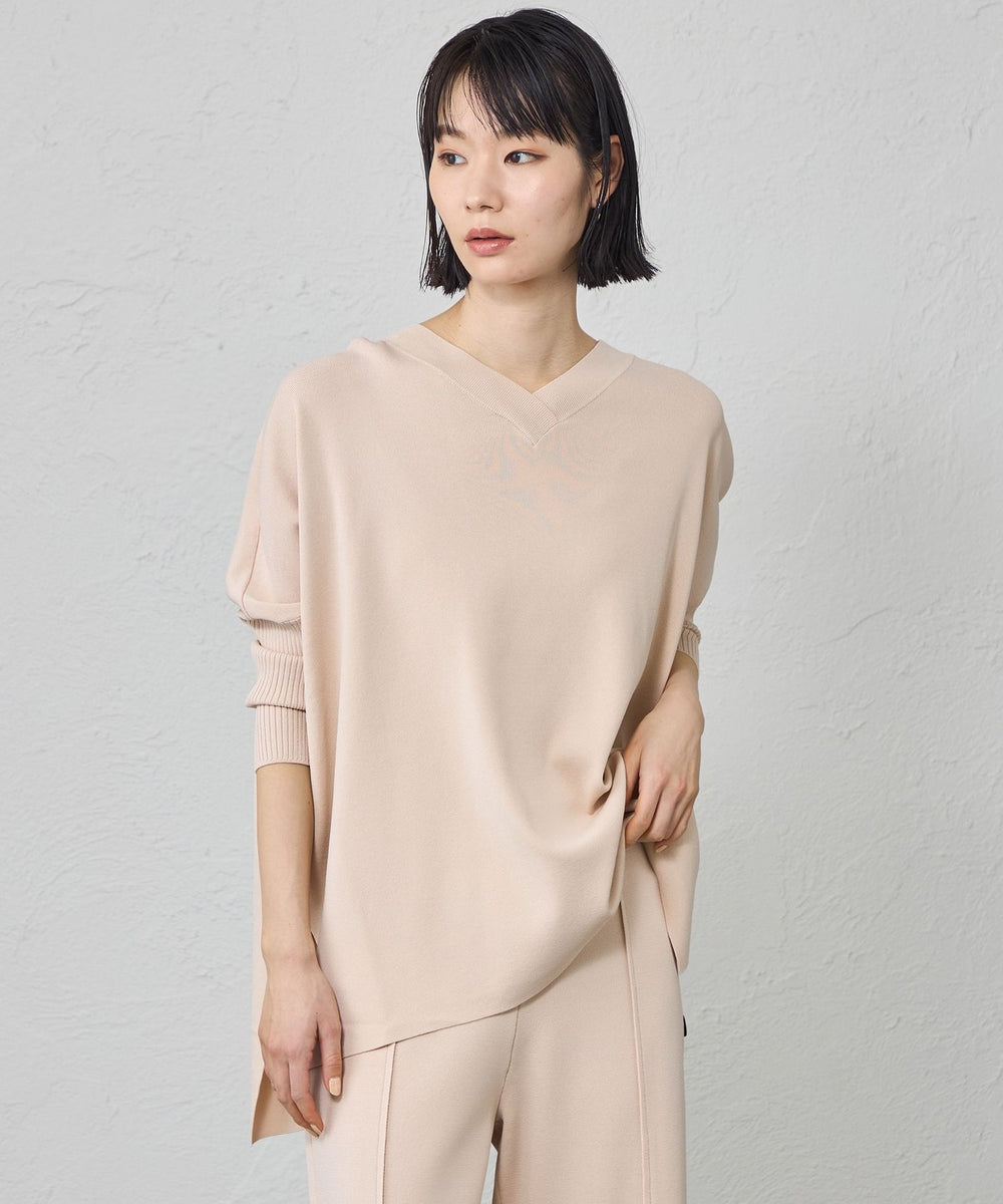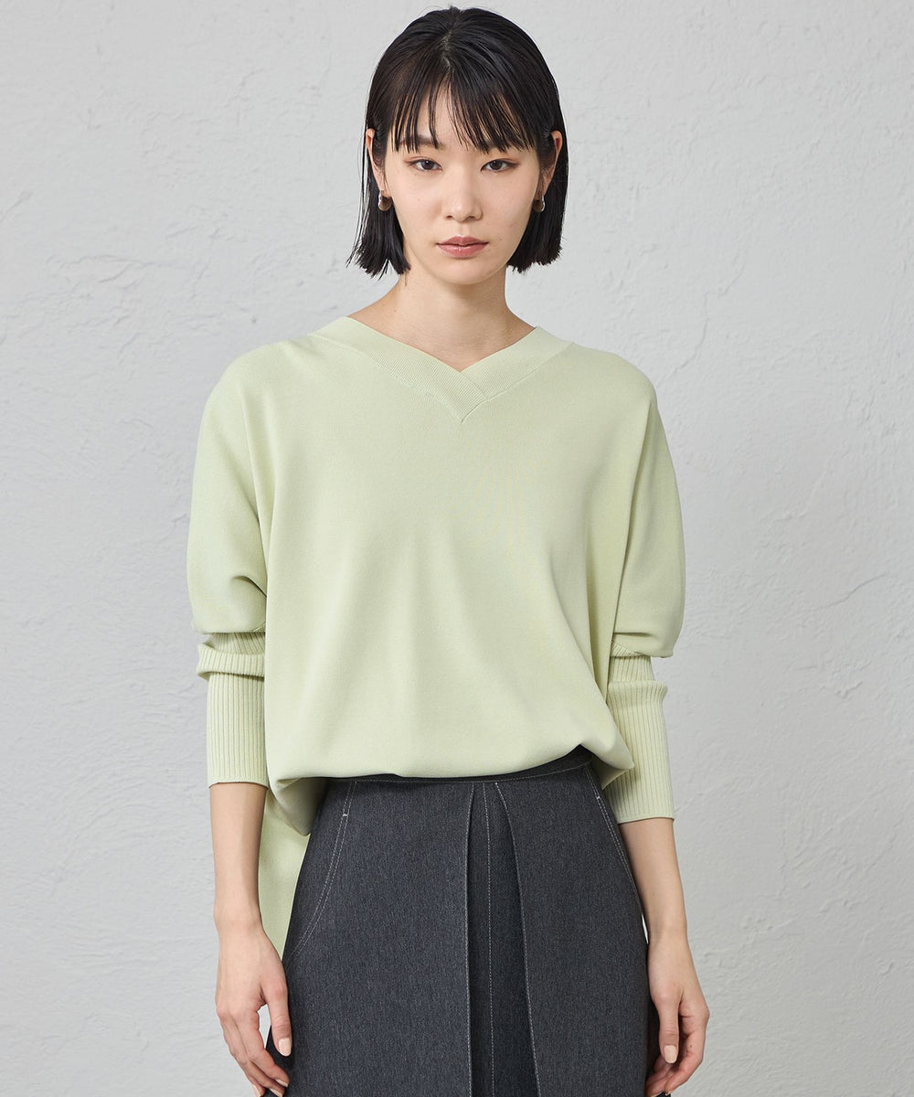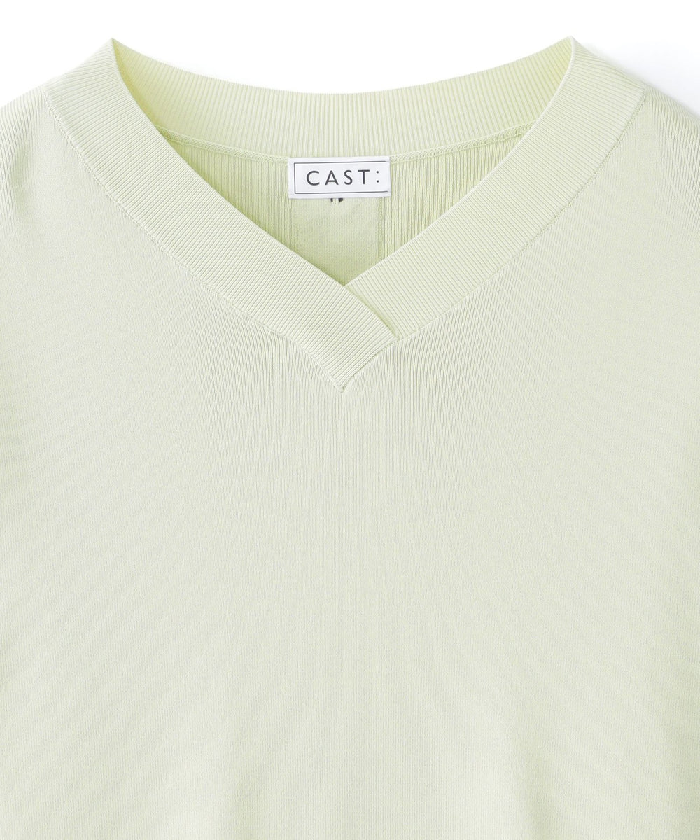 ネックラインは浅いVネック、袖は7分丈ですっきり仕上げています。