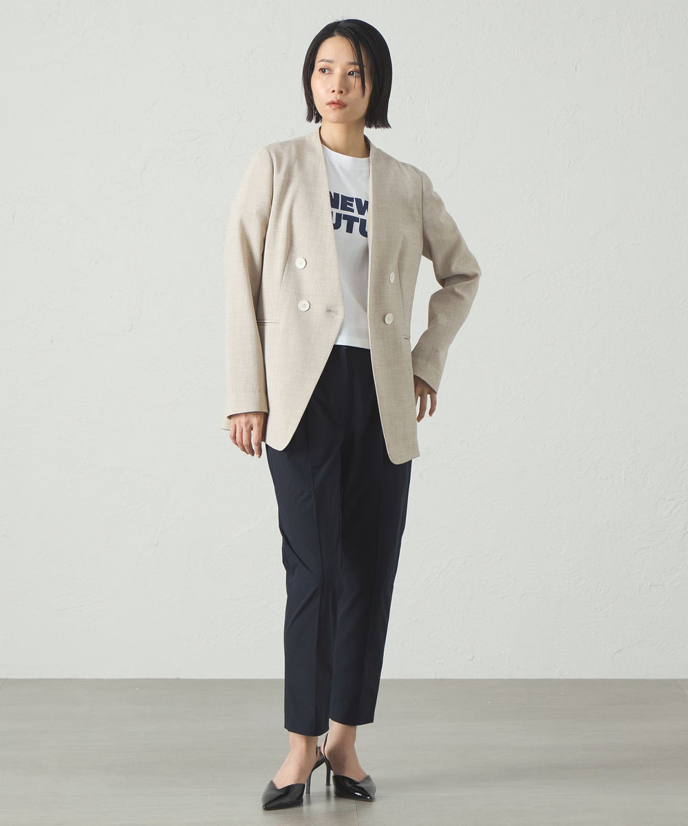 身幅はボクシーなシルエット、肩はドロップショルダーで少し長め丈になっていて、今までにない新鮮なバランスです。