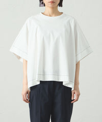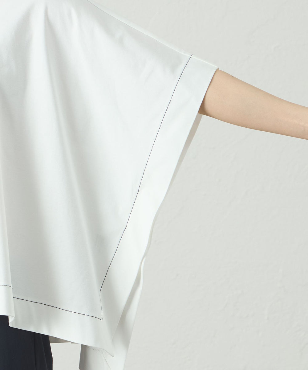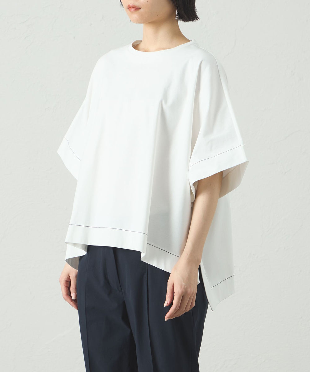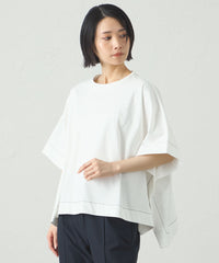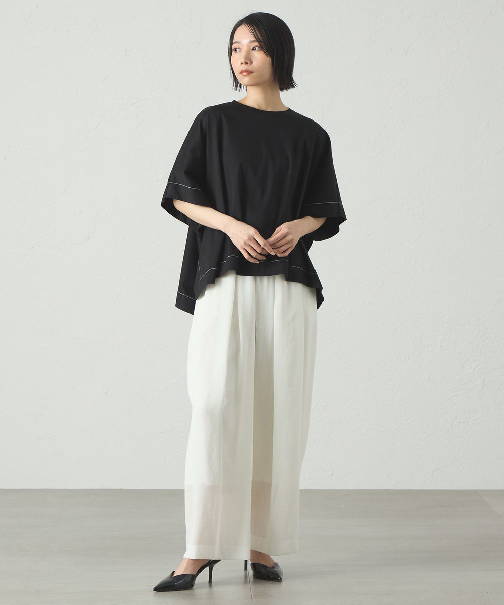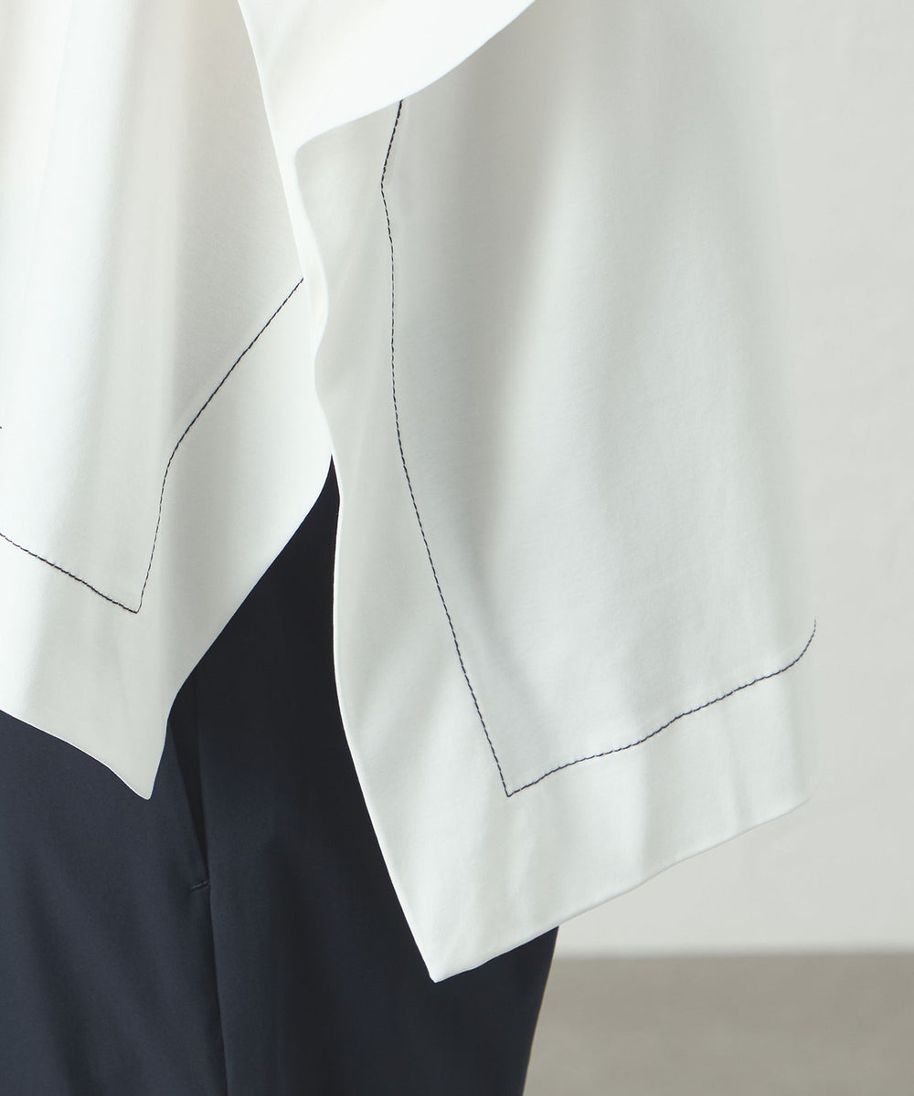 ポンチョのようなシルエットのオーバーサイズカットソー。太幅のステッチデザインを入れて、全体の雰囲気を引き締めました。