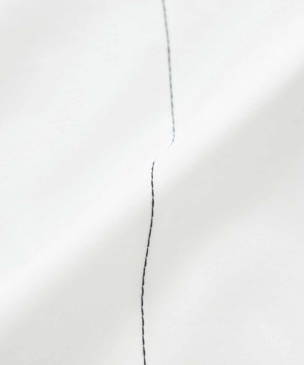 身頃はボクシーなシルエットで、体型を選ばず着用でき、配色ステッチが全体の雰囲気をモードに引き締めてくれます。