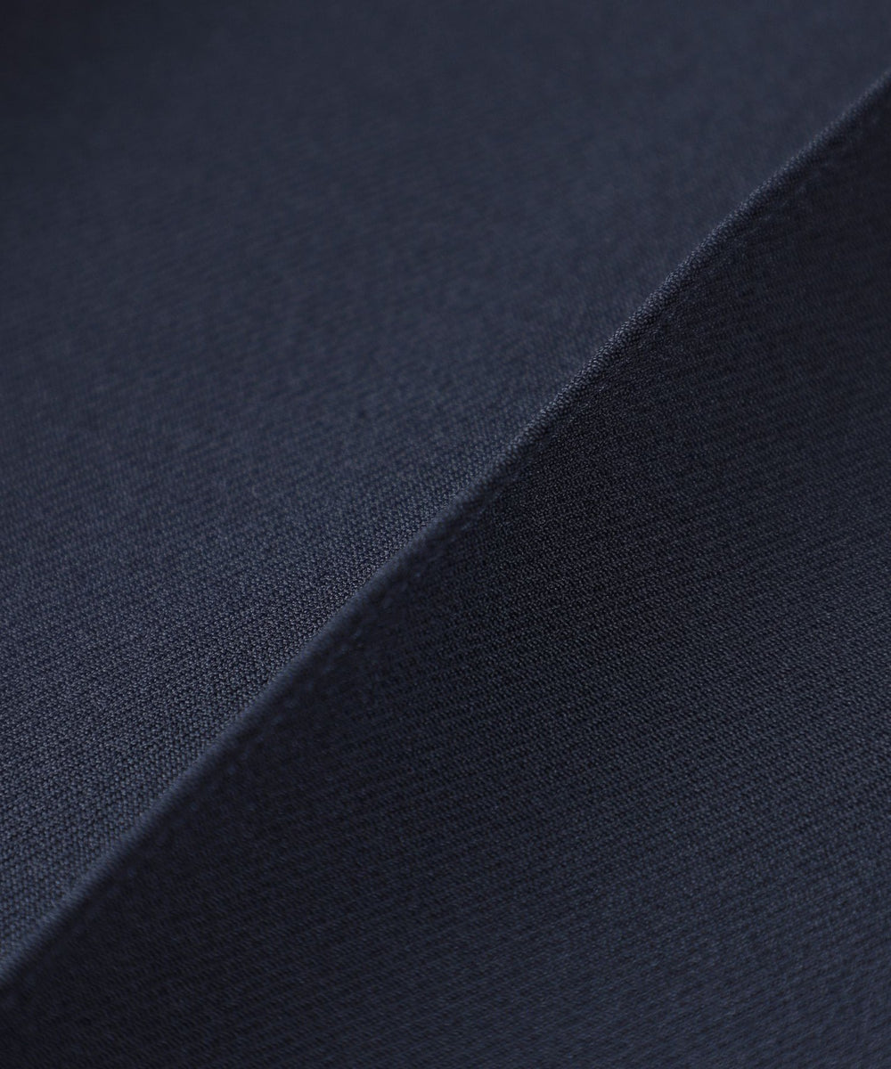 三重織のポリエステル素材です。ドライタッチな肌触りで、フォルムが出やすいふっくらとした生地感が特徴。