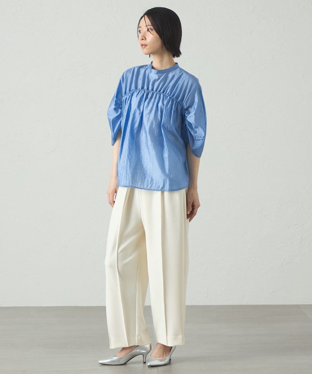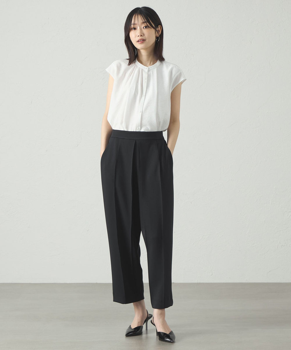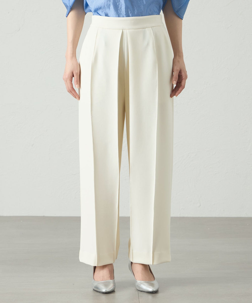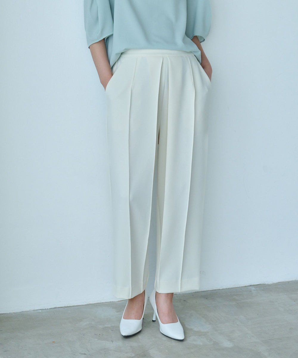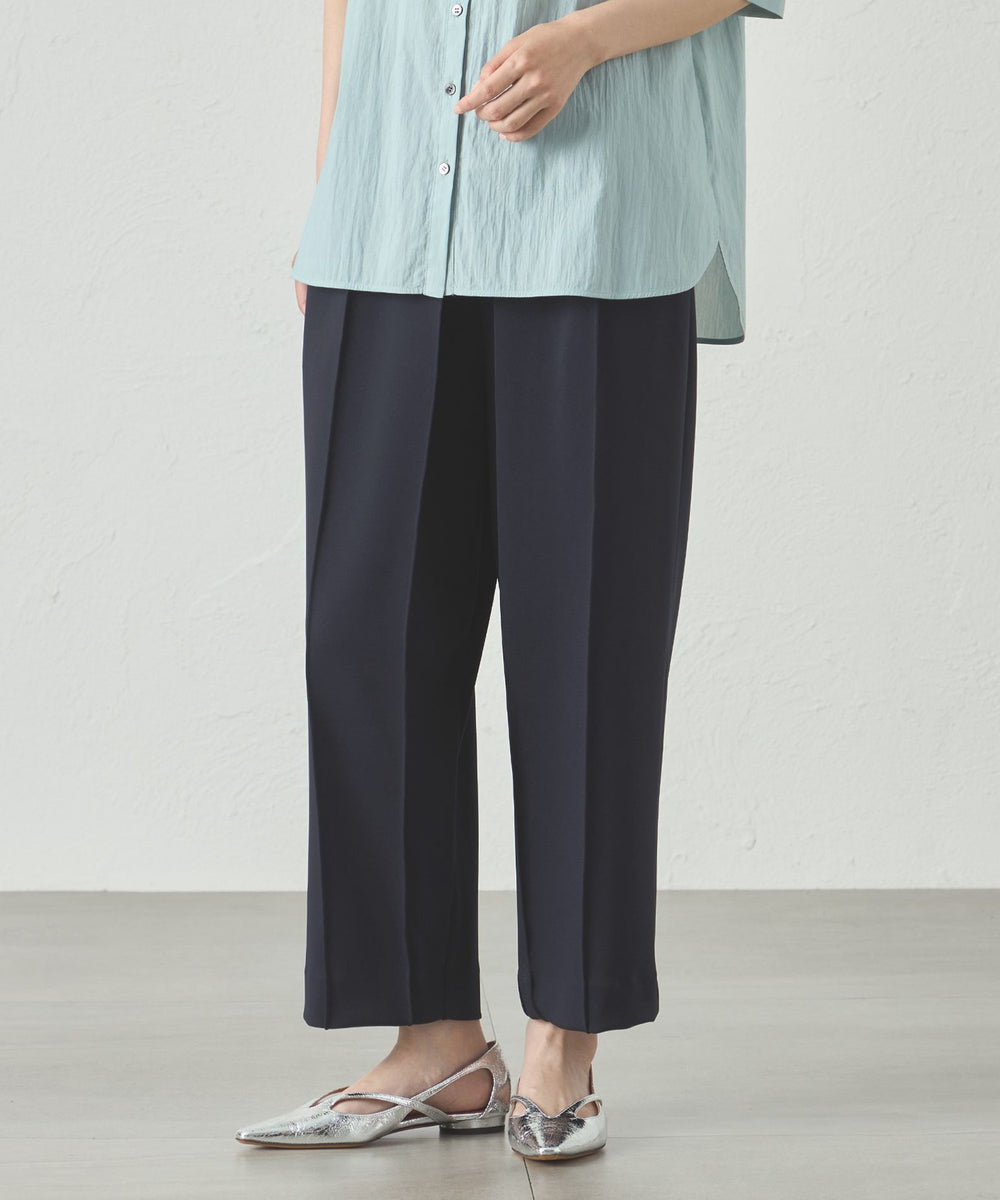 きれいめなジャージー素材を使用したセミワイドパンツです。