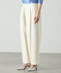 ヒップの少し下から広がる構築的なフォルムで、大きめに入ったタックがデザインポイントになっています。