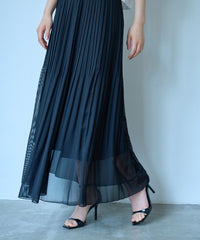 【着回し抜群/セットアップ対応】メッシュカラミプリーツスカート