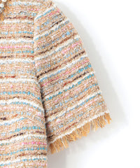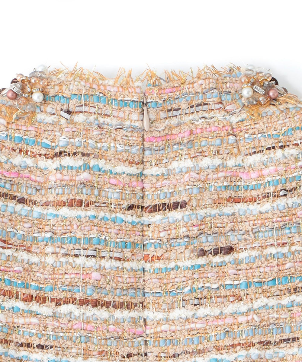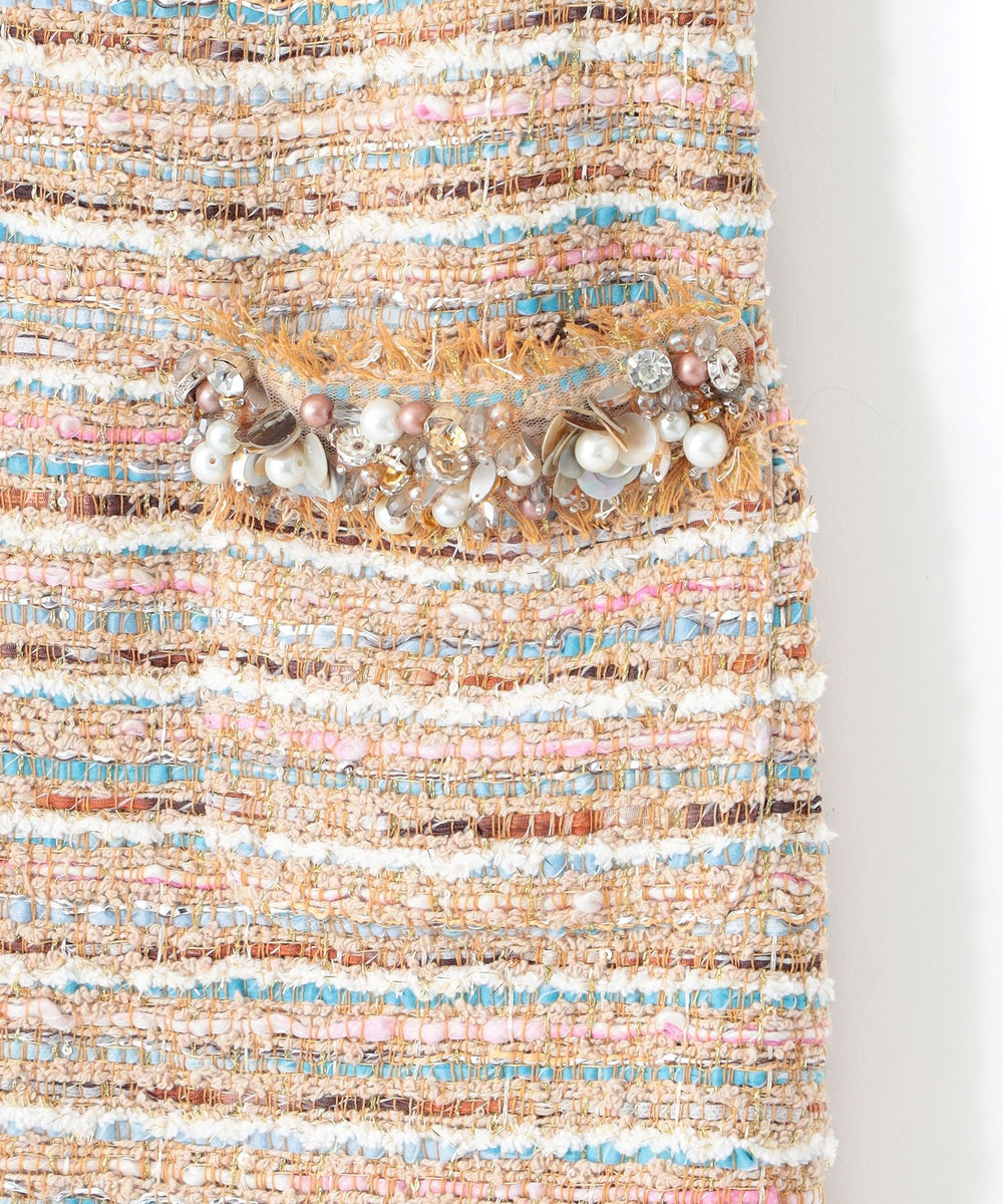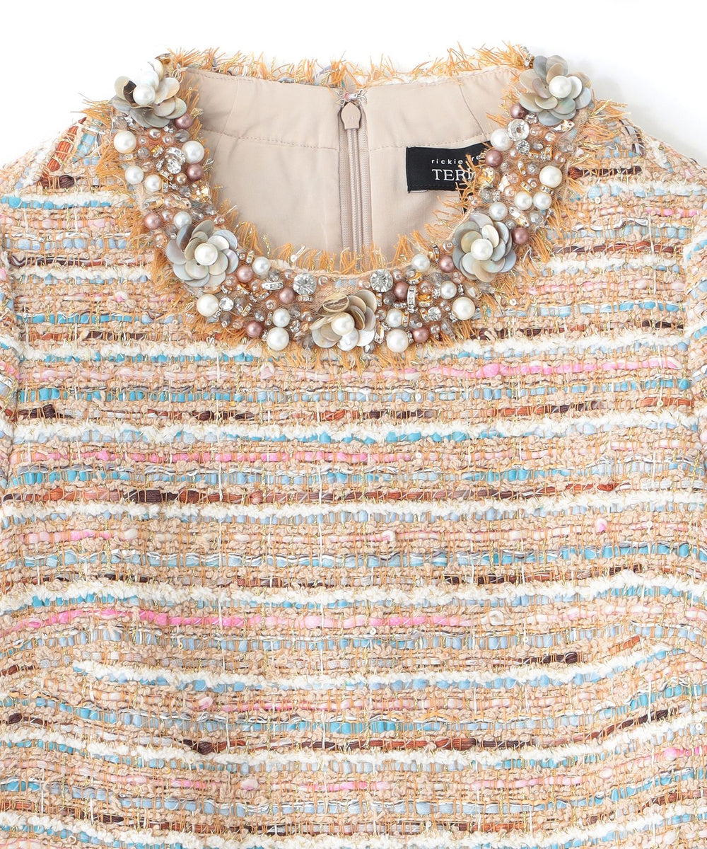 ネックとポケットにあしらわれたビーズが非常に意匠感のある1枚です。