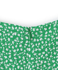 肩を美しく見せるアームホールと、上品なネックラインのコンパクトなトップに、ふんわりと女性らしいシルエットのスカート。
