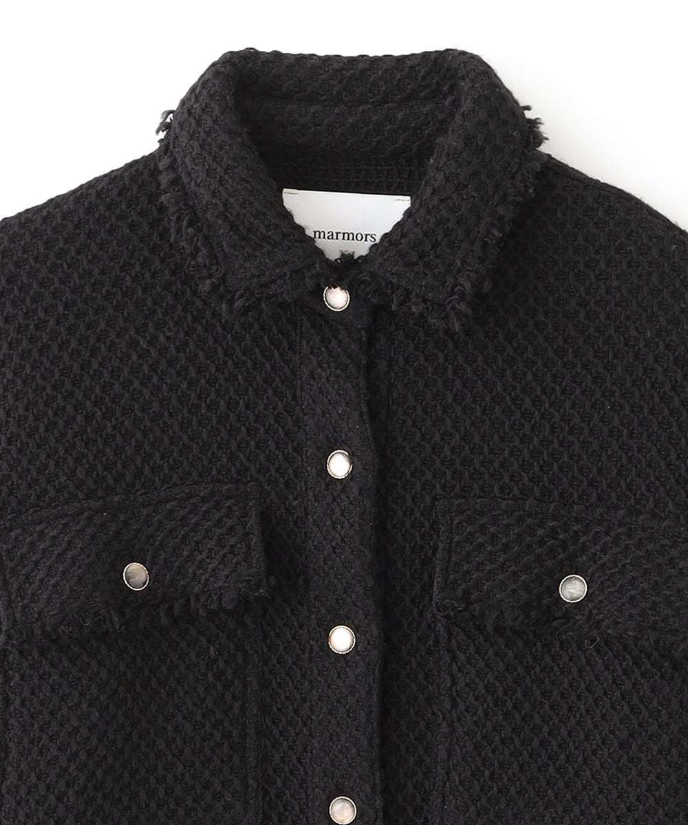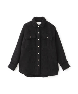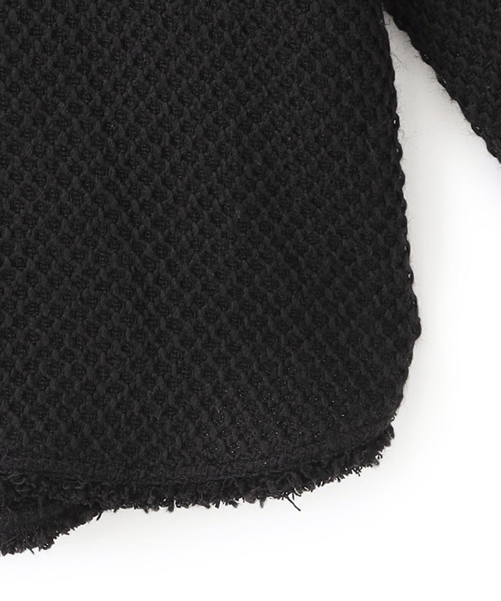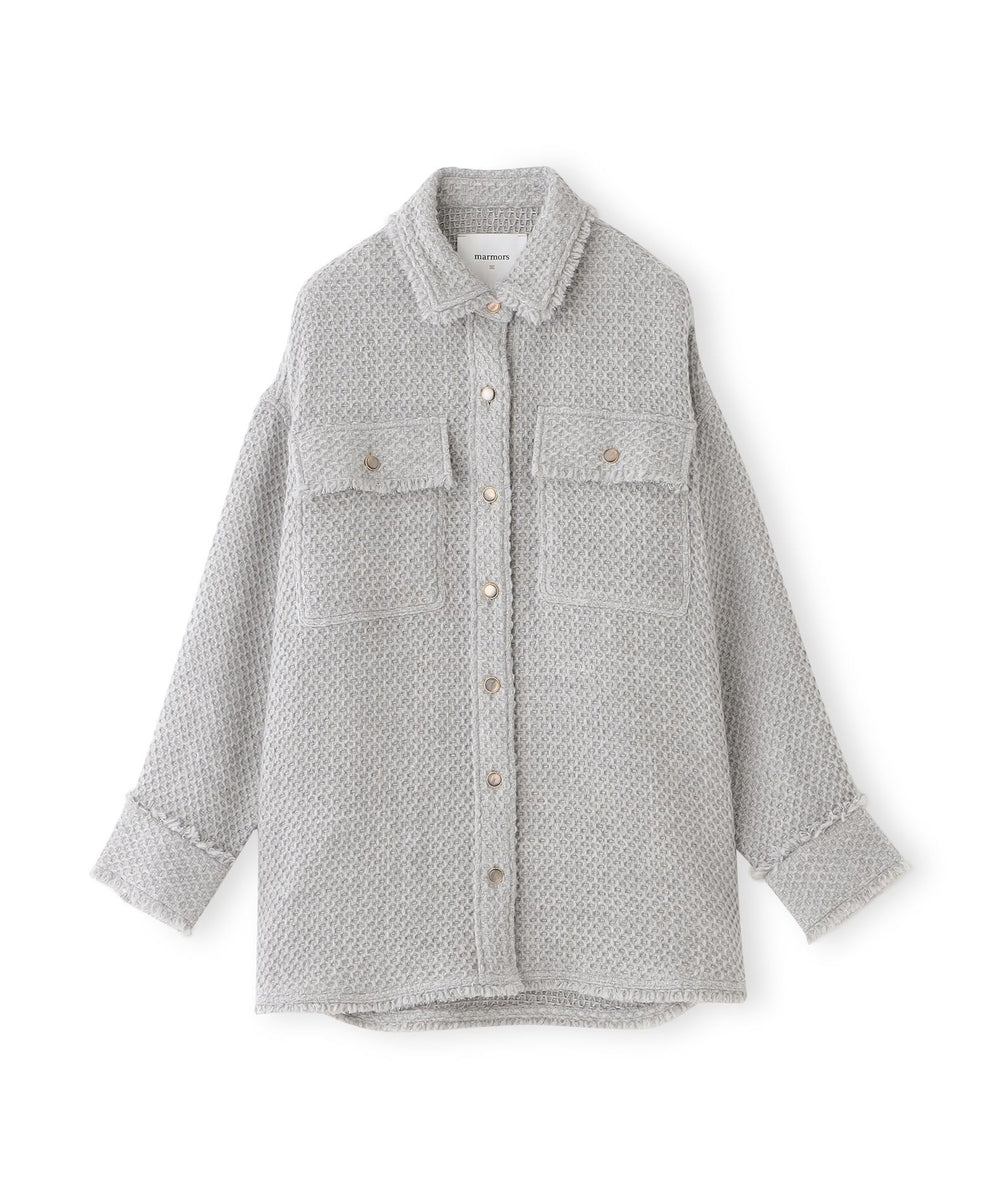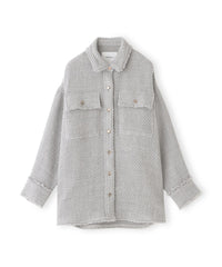 厚手のニットにも織りやすいオーバーシルエットで、ツイードの上品さをデイリーアイテムに落とし込んだ一枚です。