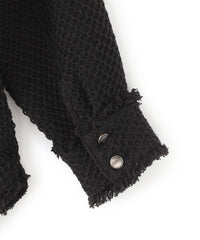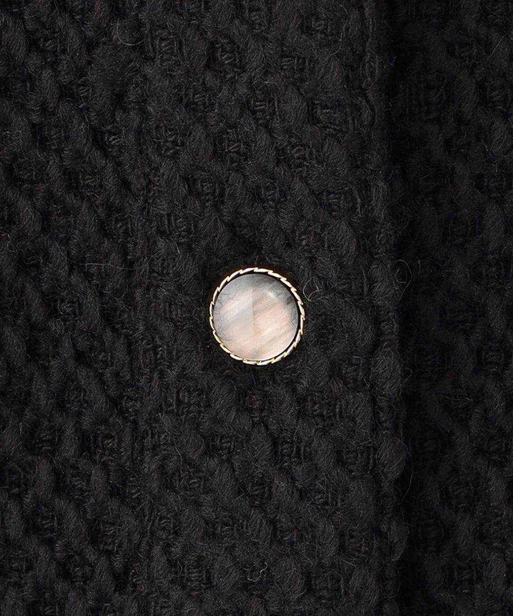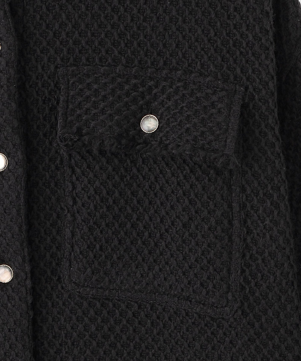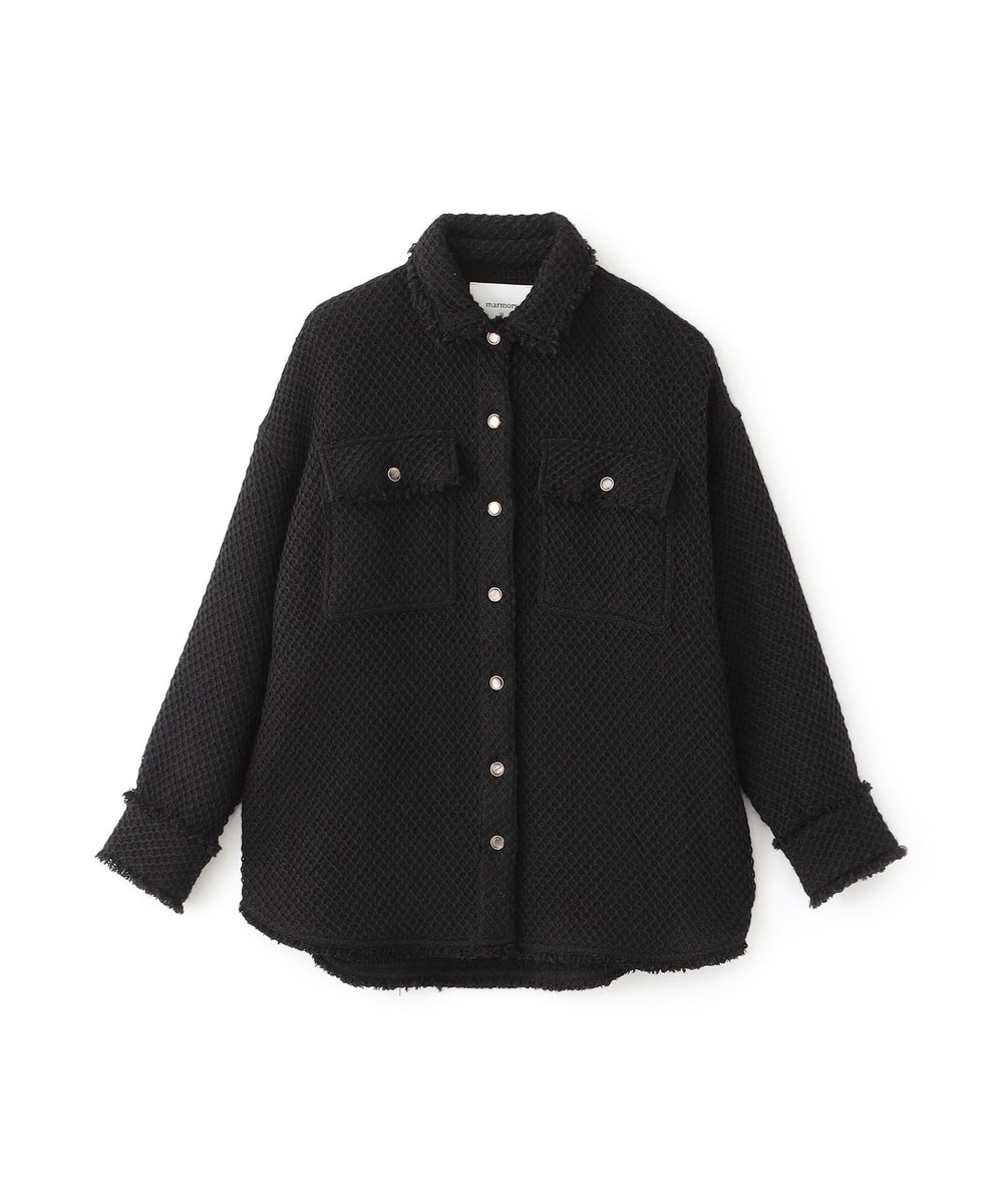 厚手のニットにも織りやすいオーバーシルエットで、ツイードの上品さをデイリーアイテムに落とし込んだ一枚です。