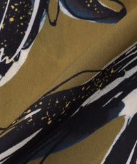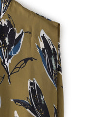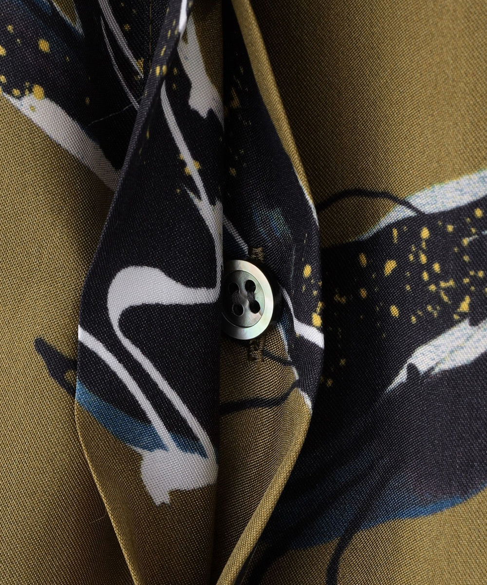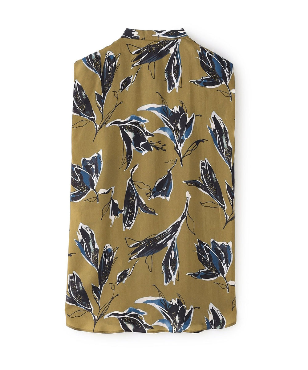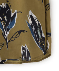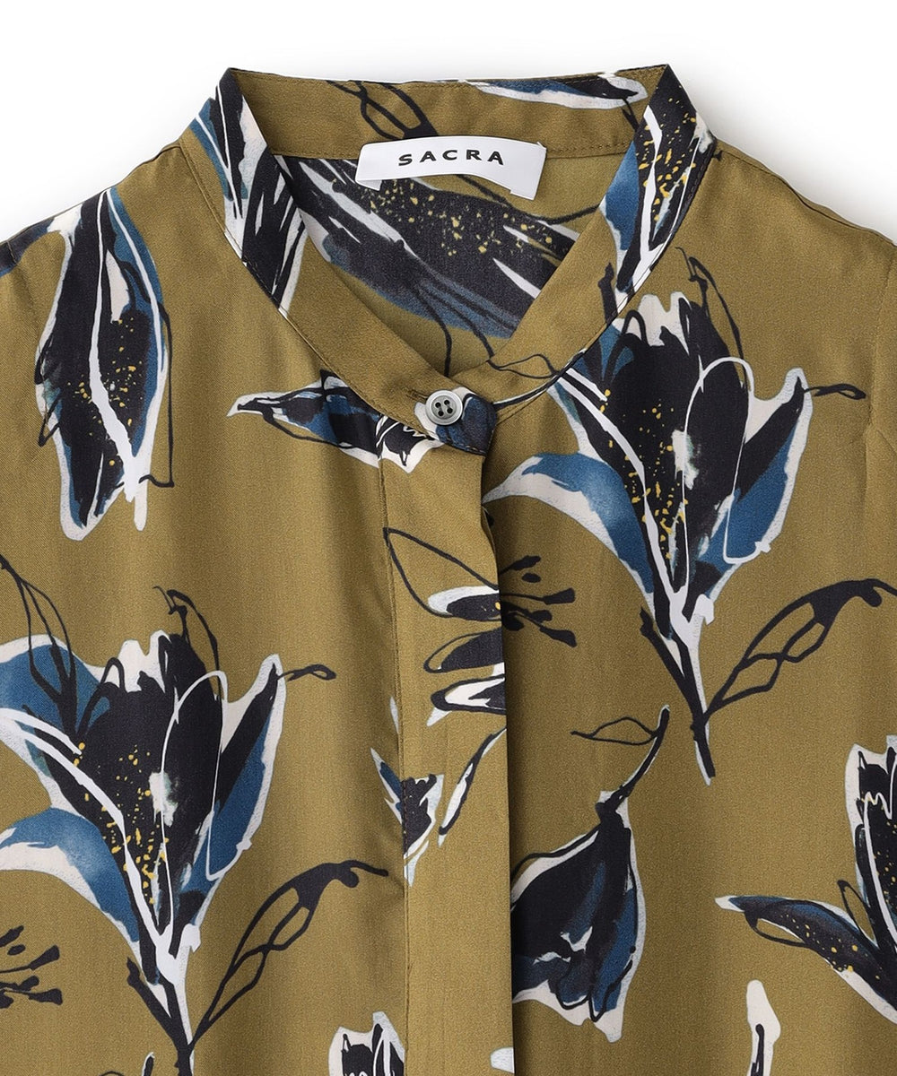 秋を感じさせる深みのある色合いが魅力のSACRAオリジナルプリントのバンドカラートップ。