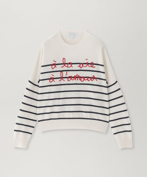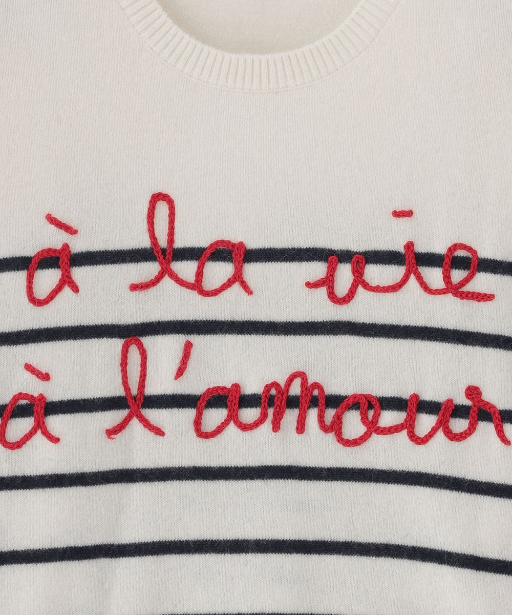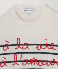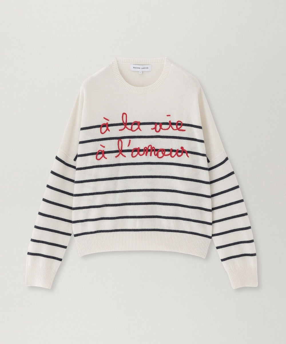 メゾンラビッシュのアイコニックな刺しゅうデザインのニットプルオーバー。