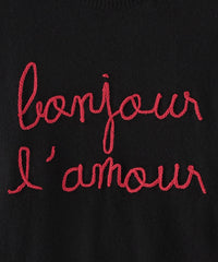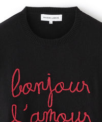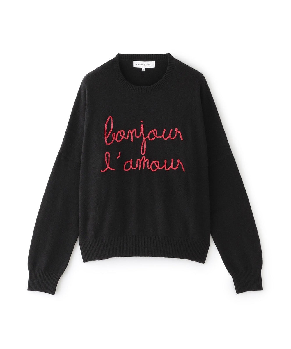 メゾンラビッシュのアイコニックな刺しゅうデザインのニットプルオーバー。