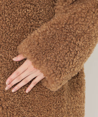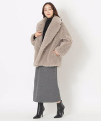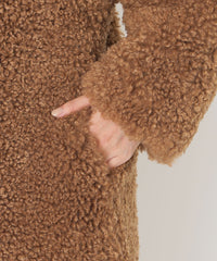 テディベアを思わせるボア素材でトラッドなPコートをモダンに。
