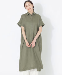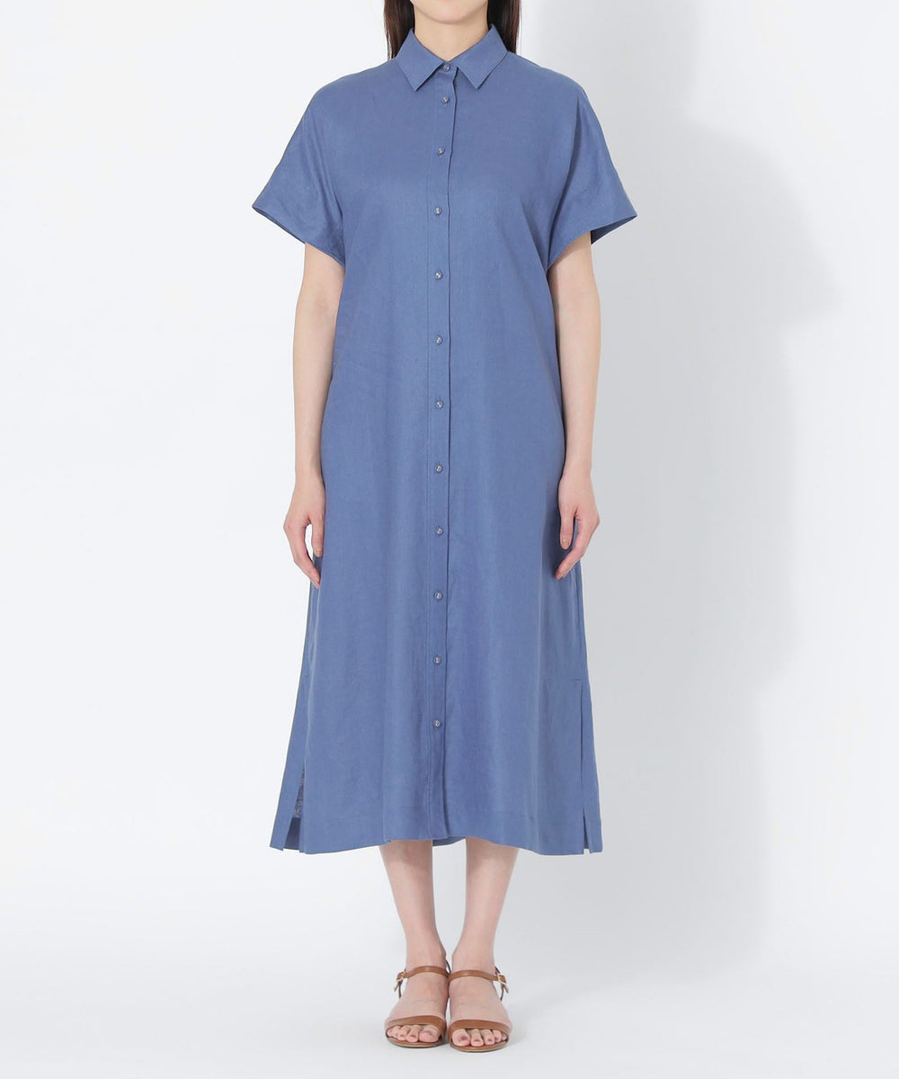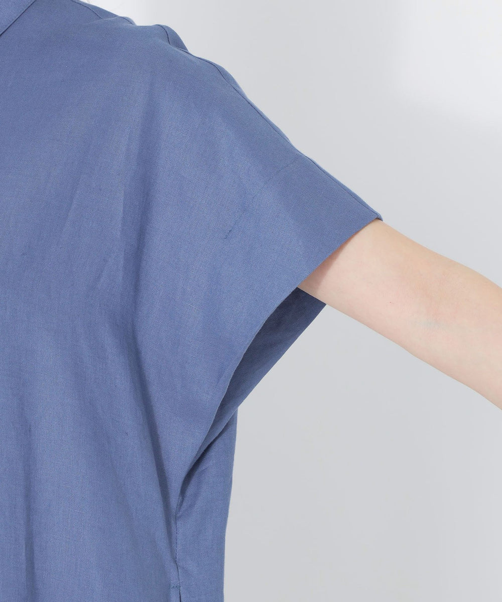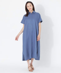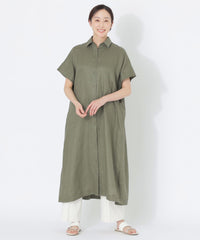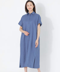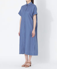小さな襟と左右に取ったスリットデザインがポイントのフレンチスリーブシャツワンピース。