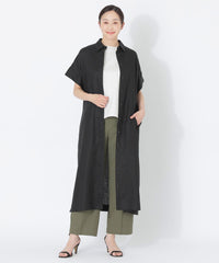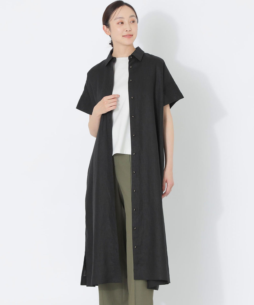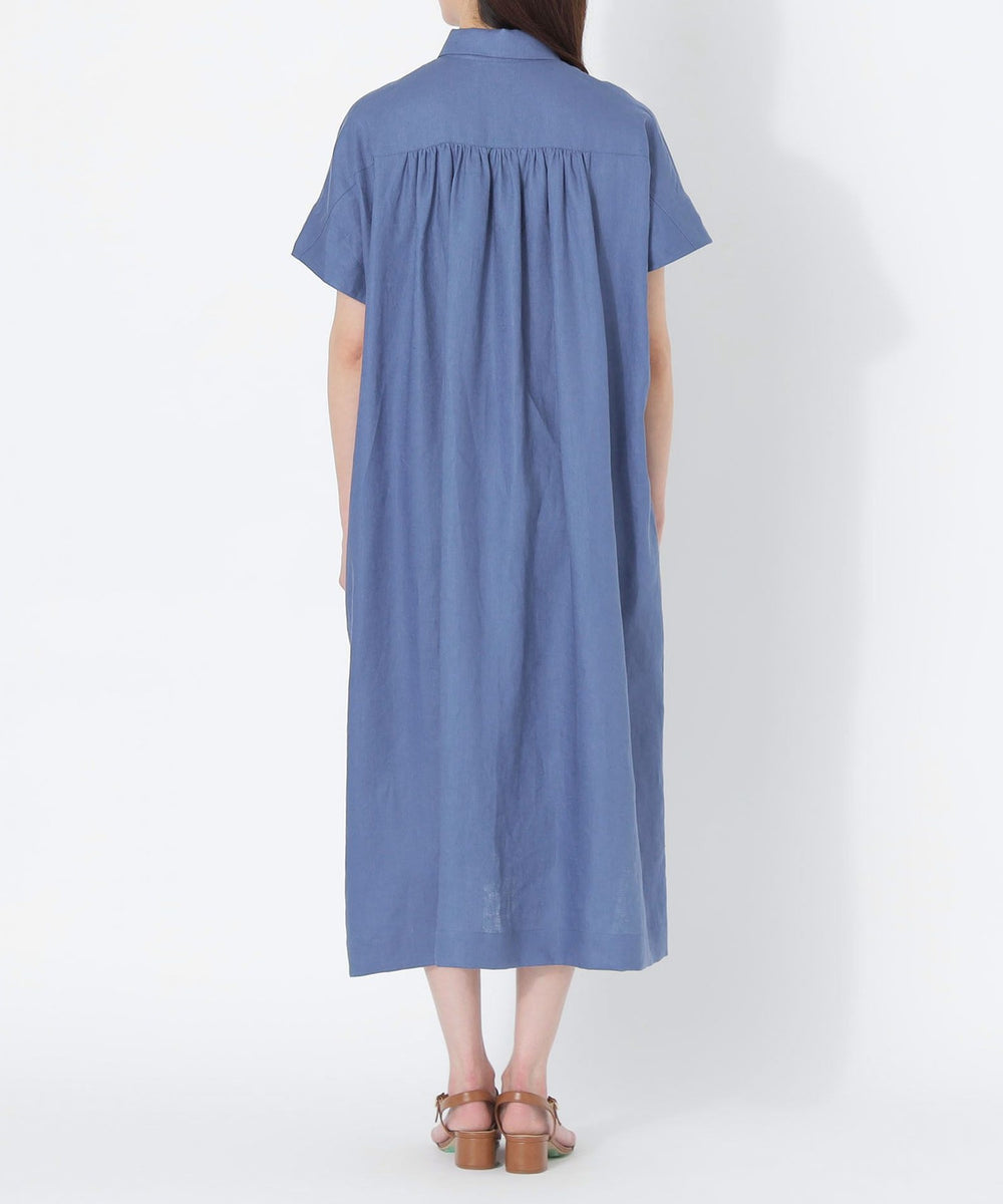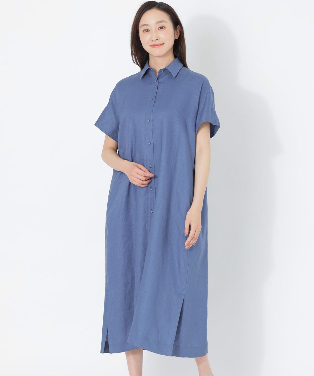 小さな襟と左右に取ったスリットデザインがポイントのフレンチスリーブシャツワンピース。
