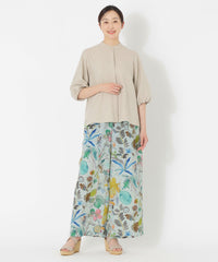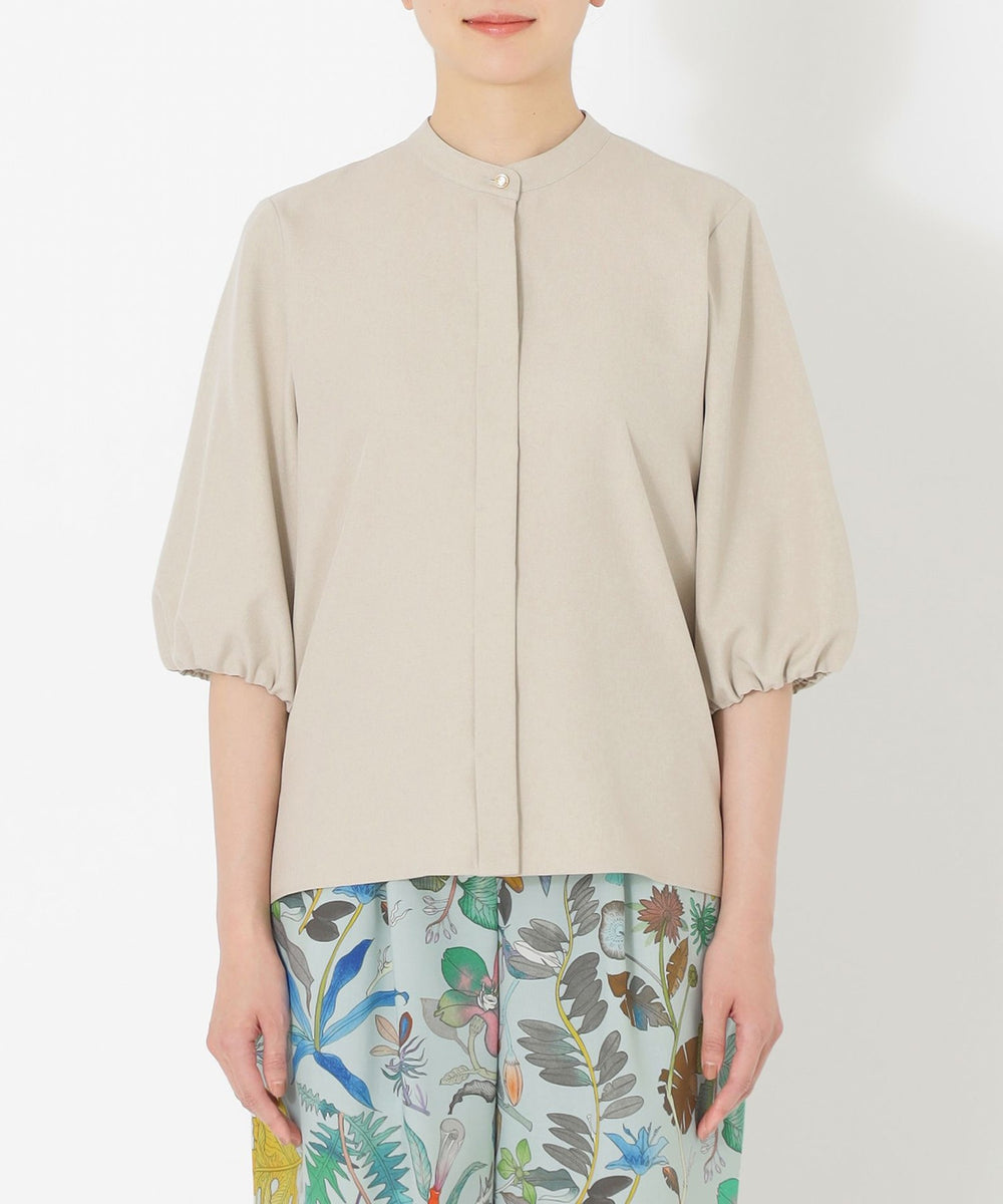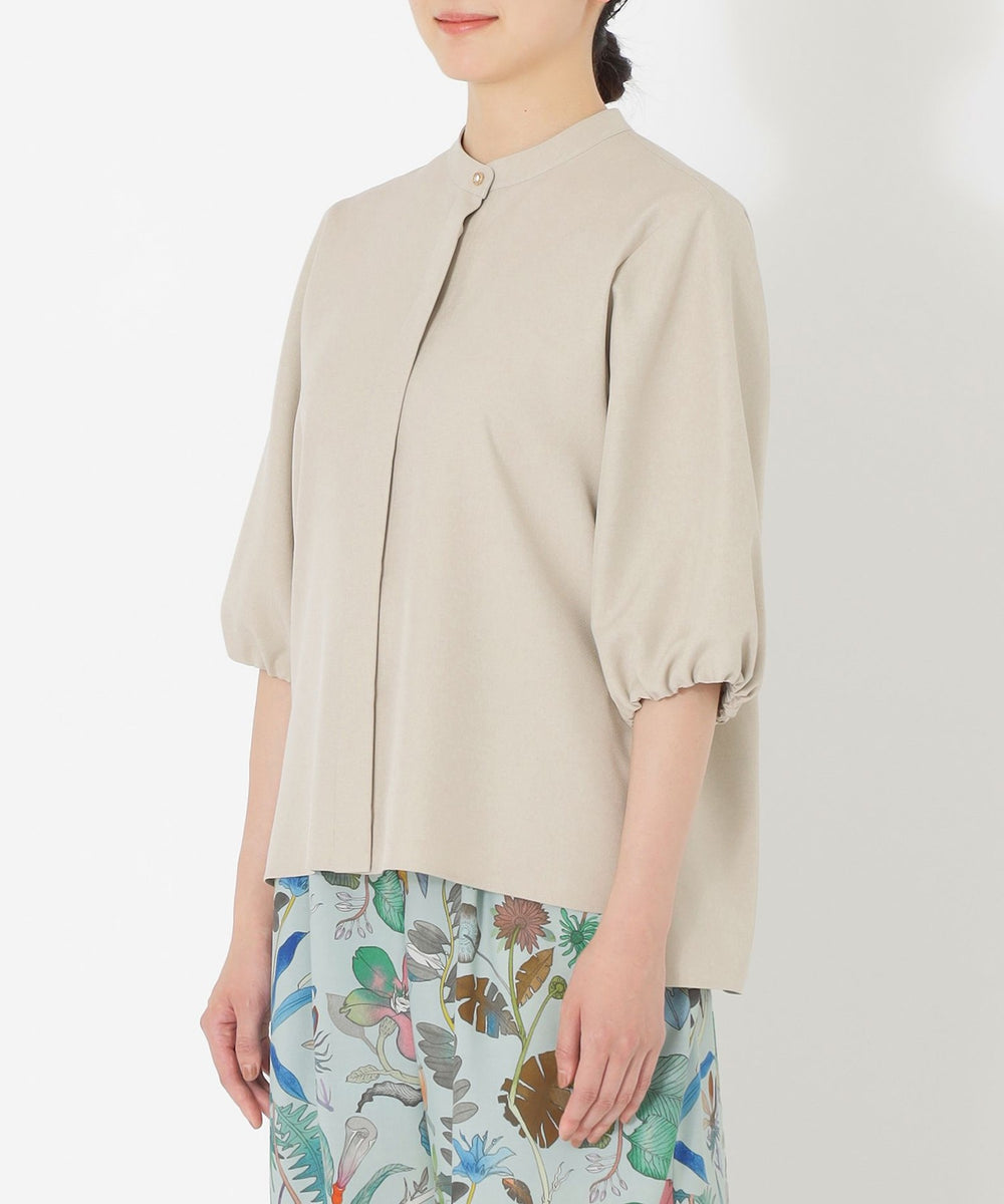 バルーンスリーブの袖デザインがポイントのハーフスリーブブラウス