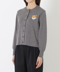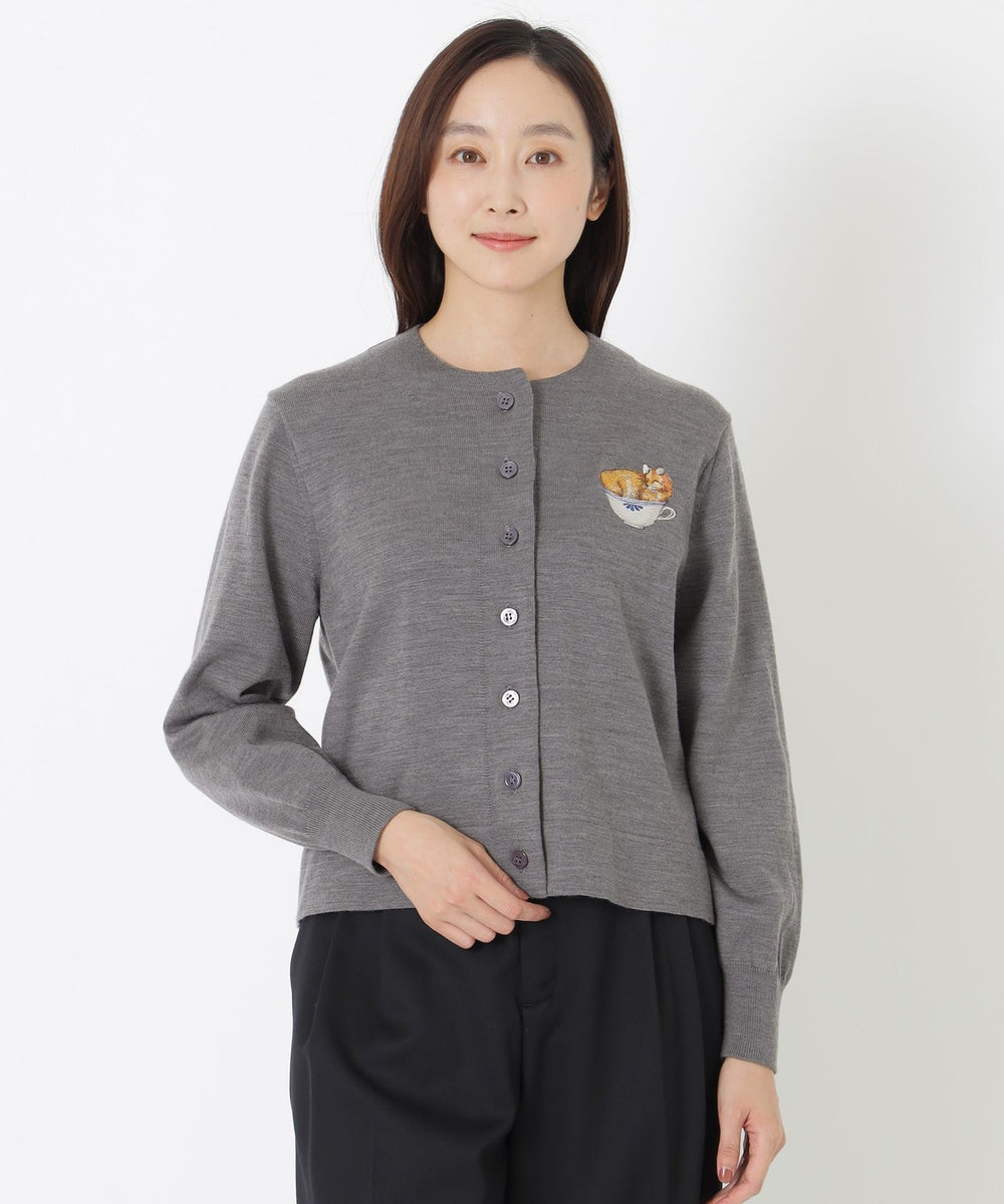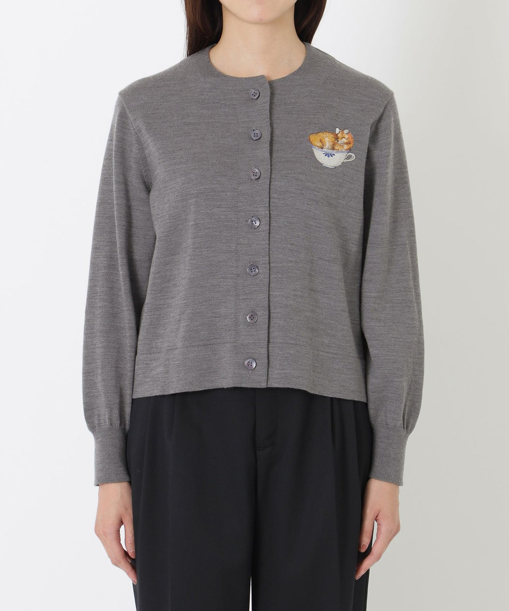 左胸にはさりげなく、福田 愛子氏デザインのカップに入った狐のワンポイント刺繍をあしらい、