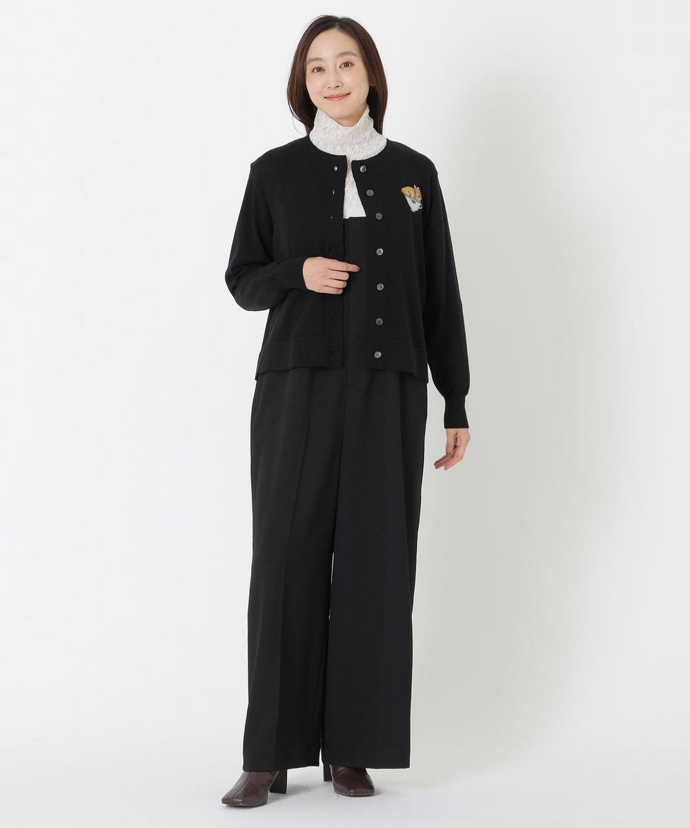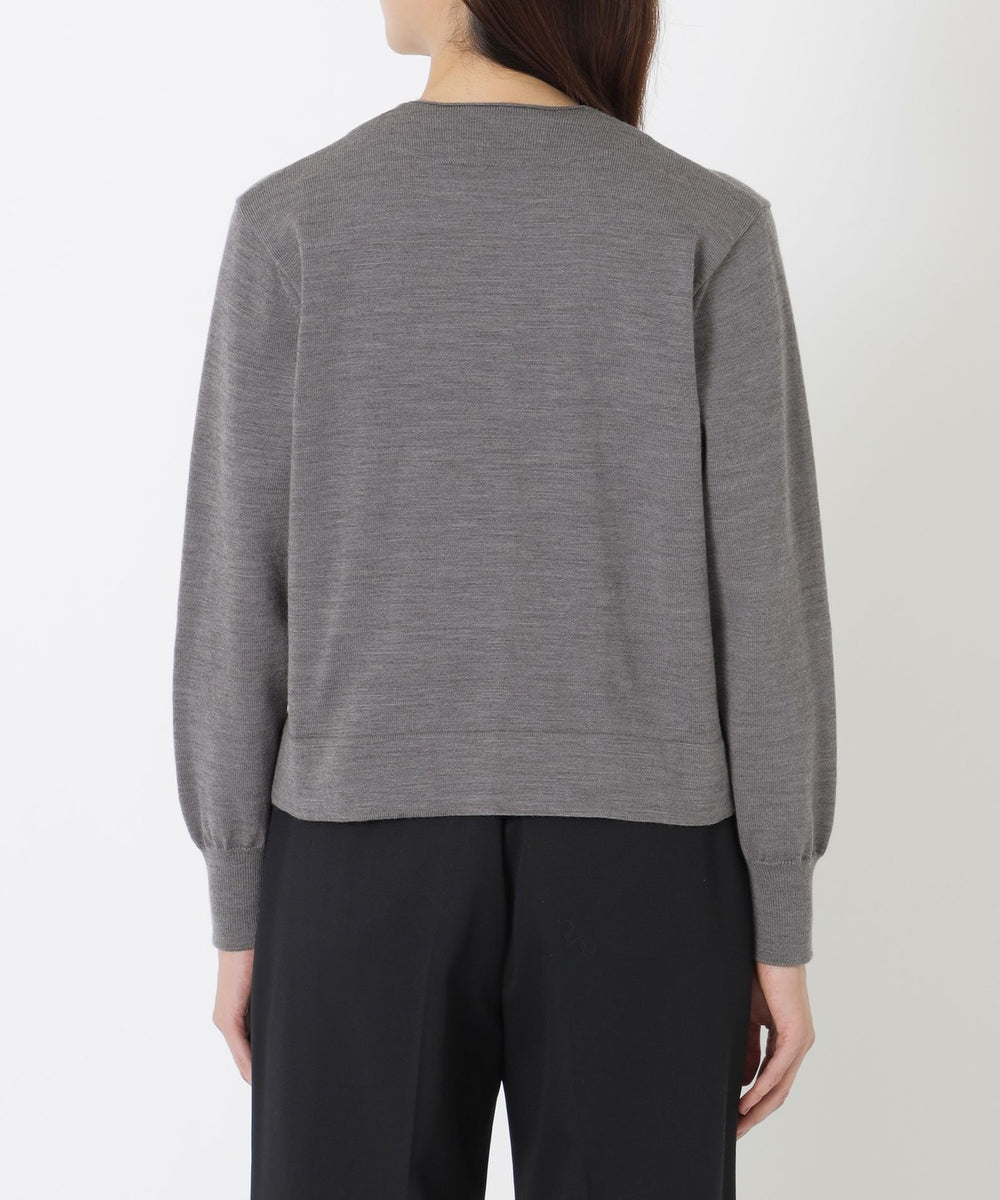 丸首デザインに裾は袋編み仕上げで、きちんと感のある佇まいに。