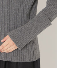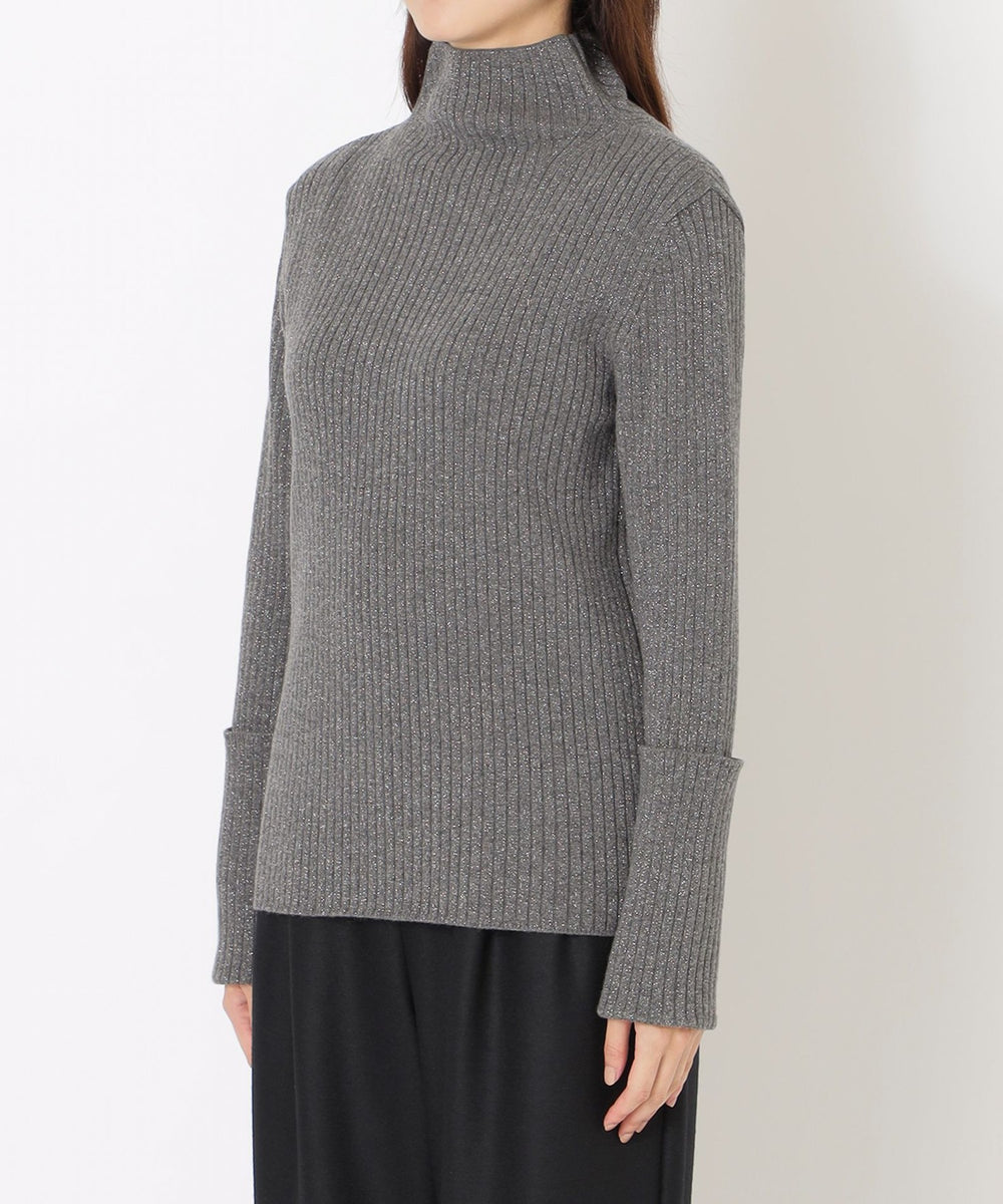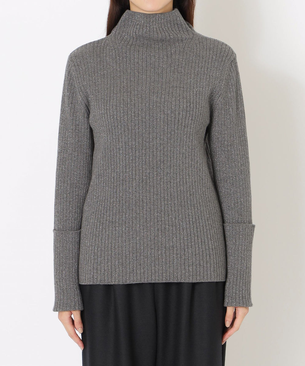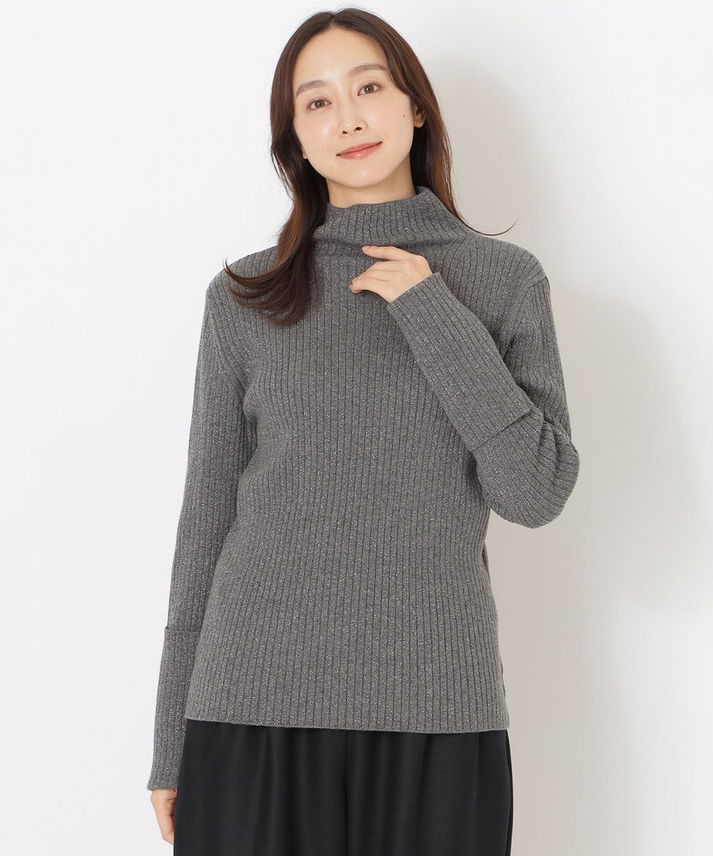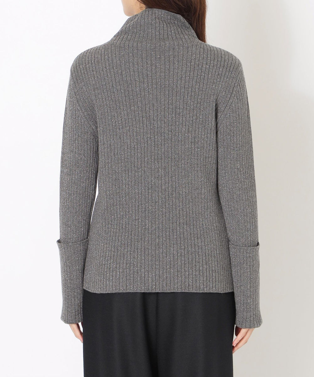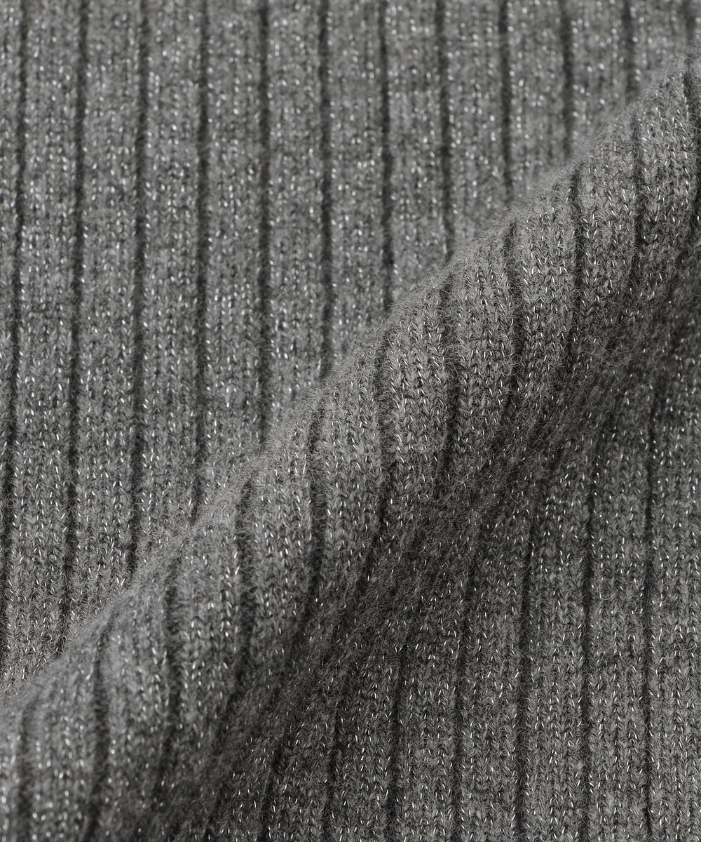 太目のリブにラメ糸を引き揃えて、カジュアルすぎない雰囲気に仕上げています。