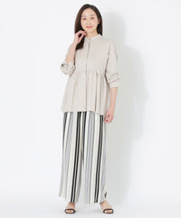 ウエストは脇までゴムを入れたタック入りワイドパンツです。