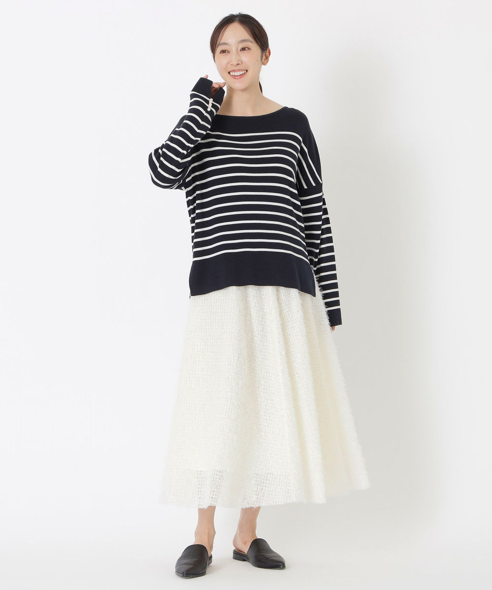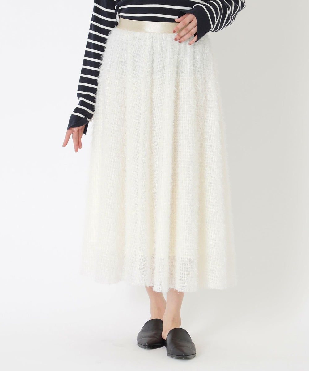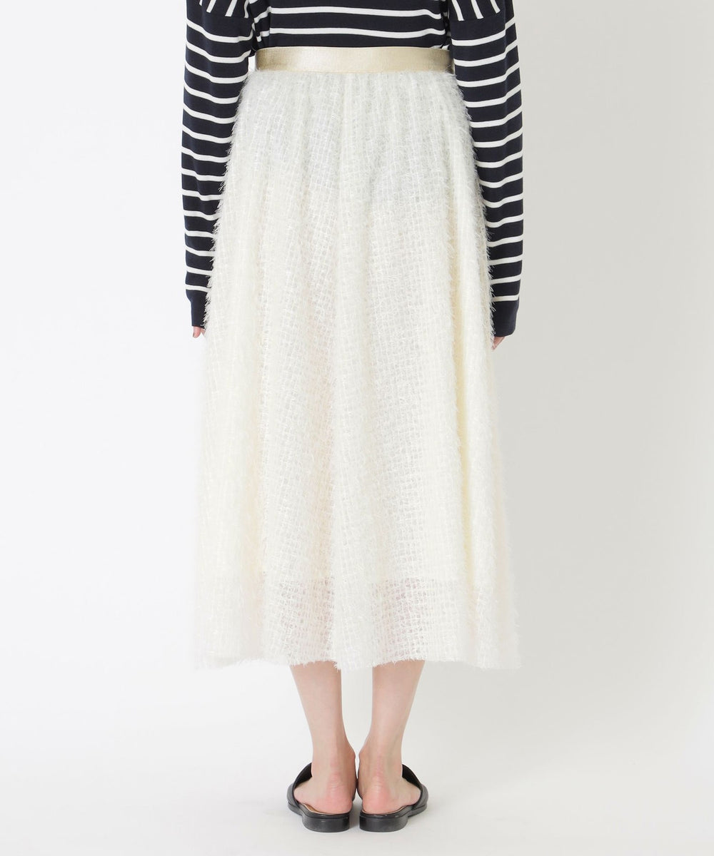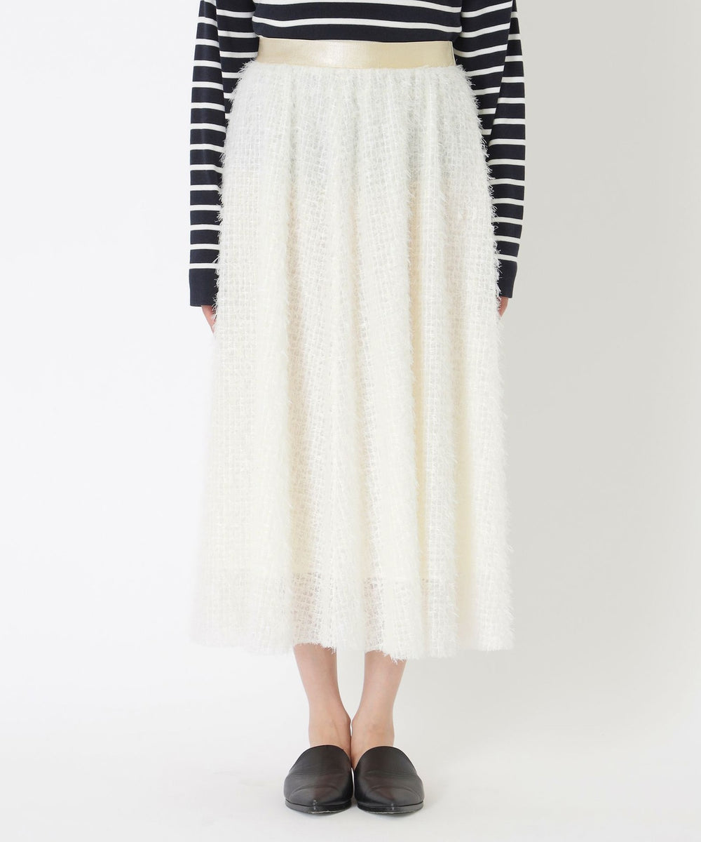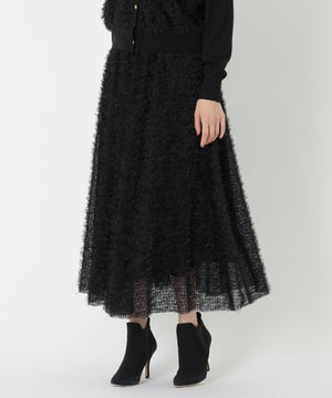 チュールベースにフェザー調の毛足がある華やかな素材感のスカートです。