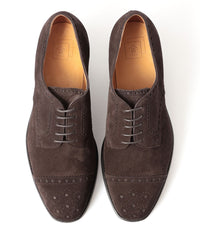大ぶりなブローグ(穴飾り)と細かなピンキング(革端をギザギザにカットする意匠)が絶妙に溶け込み、クラシックな雰囲気を醸し出す一足です。