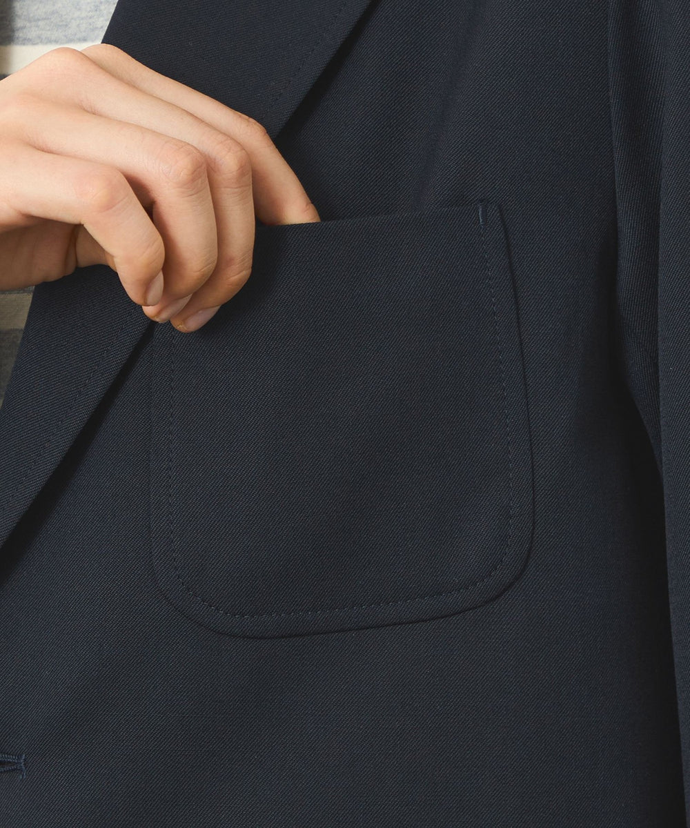 3パッチのシングルブレストブレザー。きちんと感はありつつも、Tシャツなどに合わせてカジュアルにもハマるブレザーとなっています。
