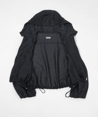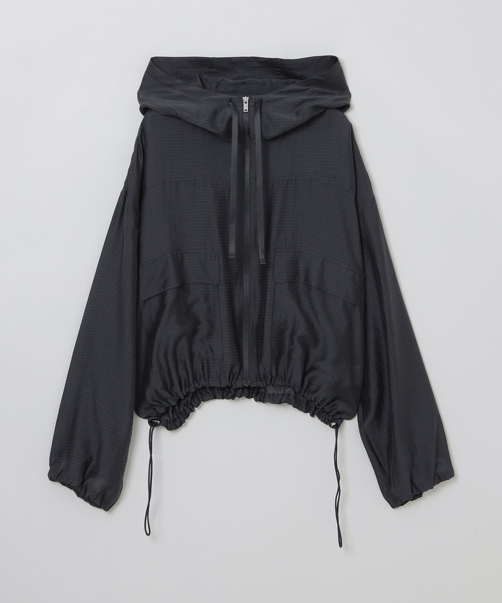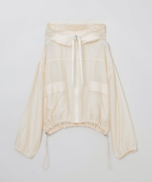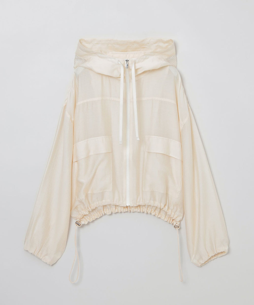 シアーな素材感で軽く羽織れるフーデッドブルゾン。