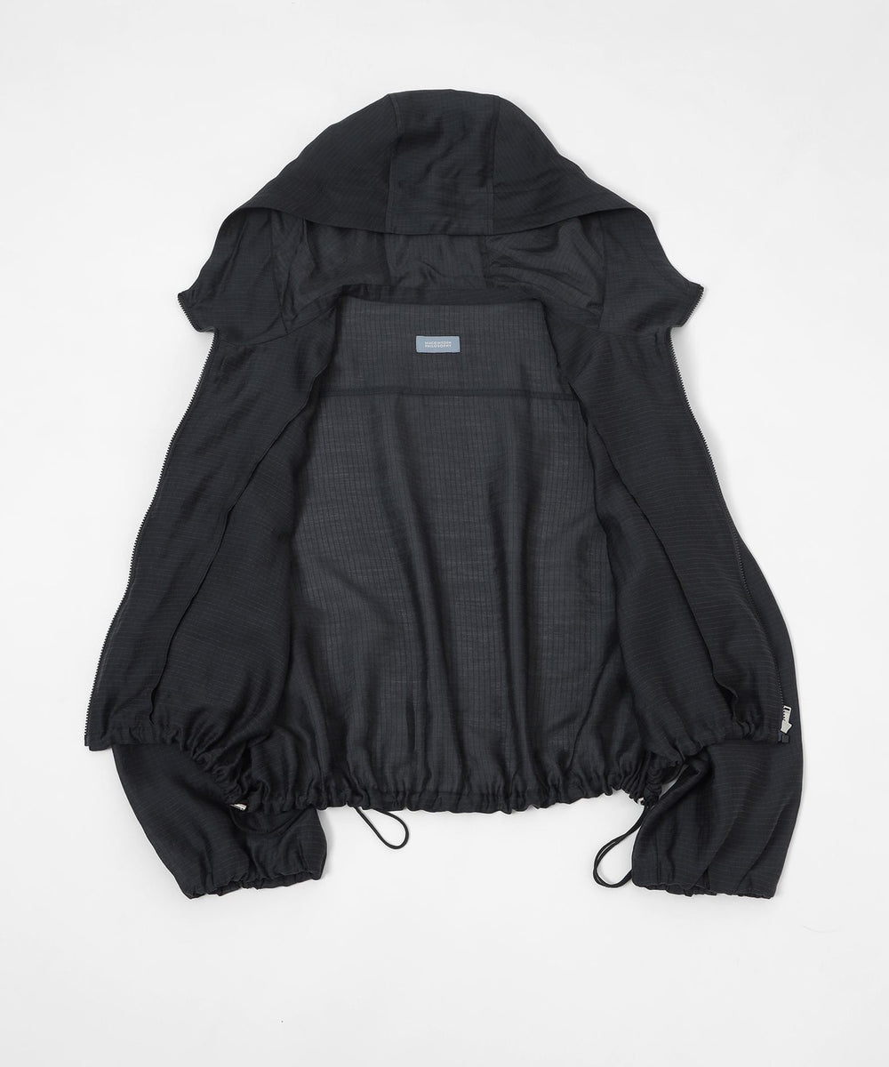 ミリタリーウェアで使用されるリップストップをシアー素材にすることでトレンド感のあるライトブルゾンに仕上げました。
