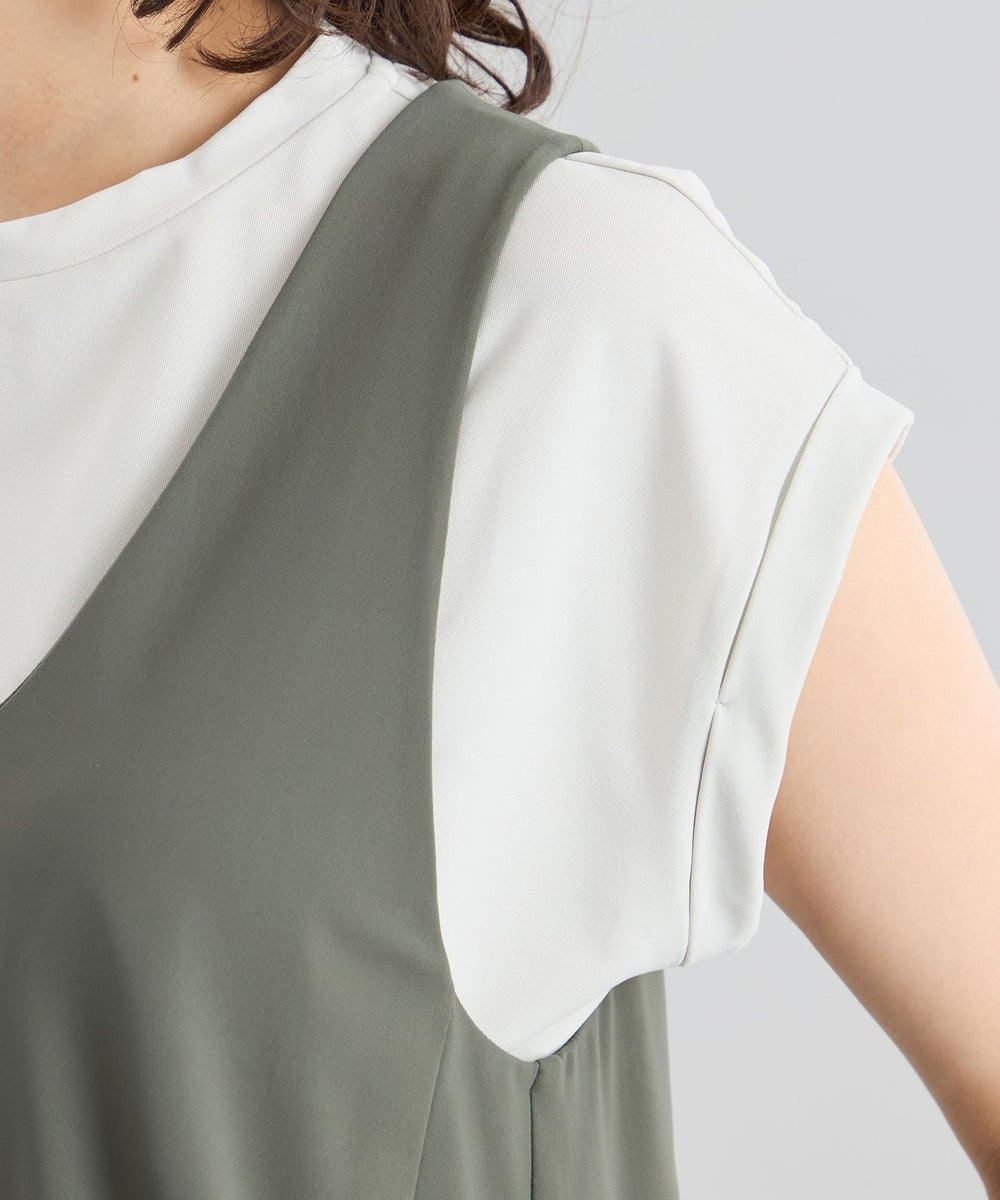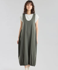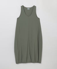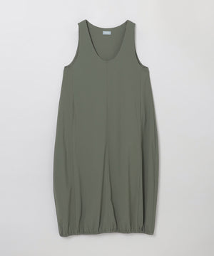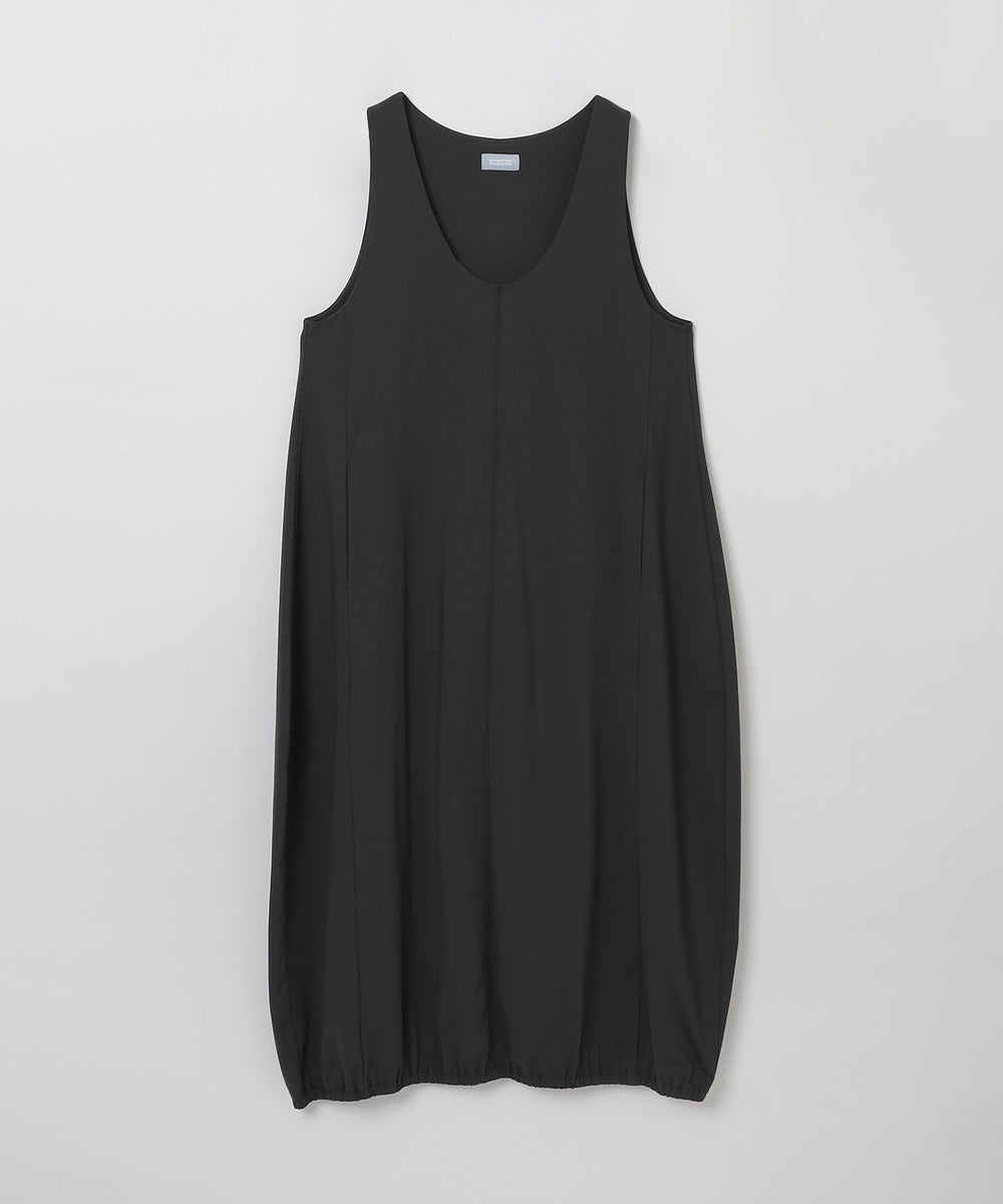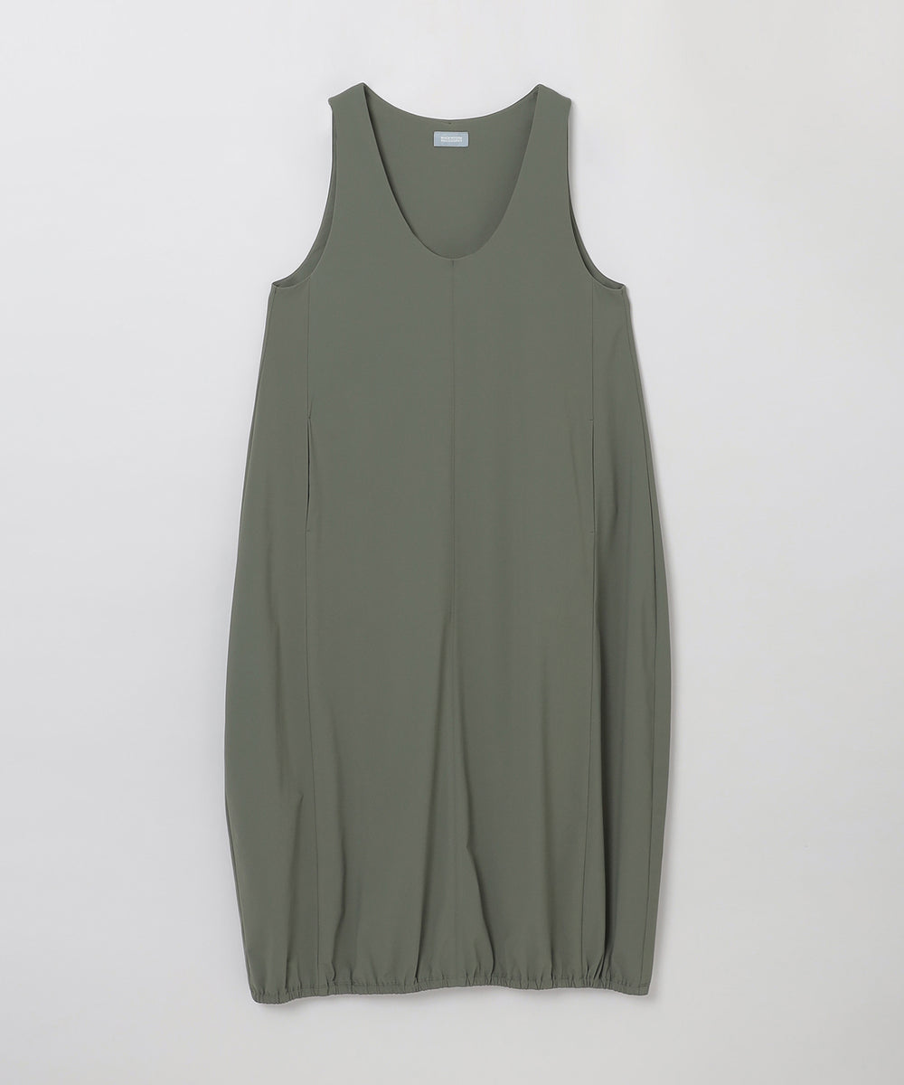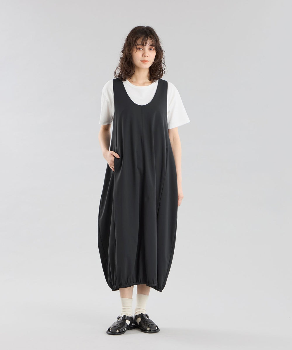 裾を絞ったコクーンシルエットのレイヤードジャージードレス。