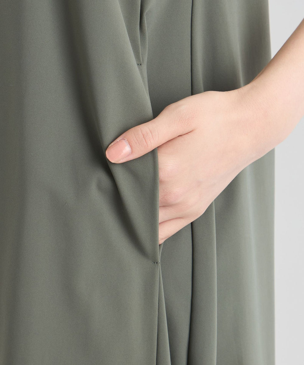 裾にゴムを入れてシルエットを作ったコクーンシルエットがポイントで、フラットシューズにもにも合わせやすいレングスにしています。