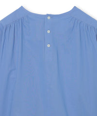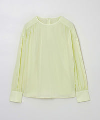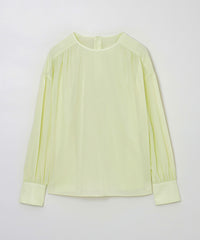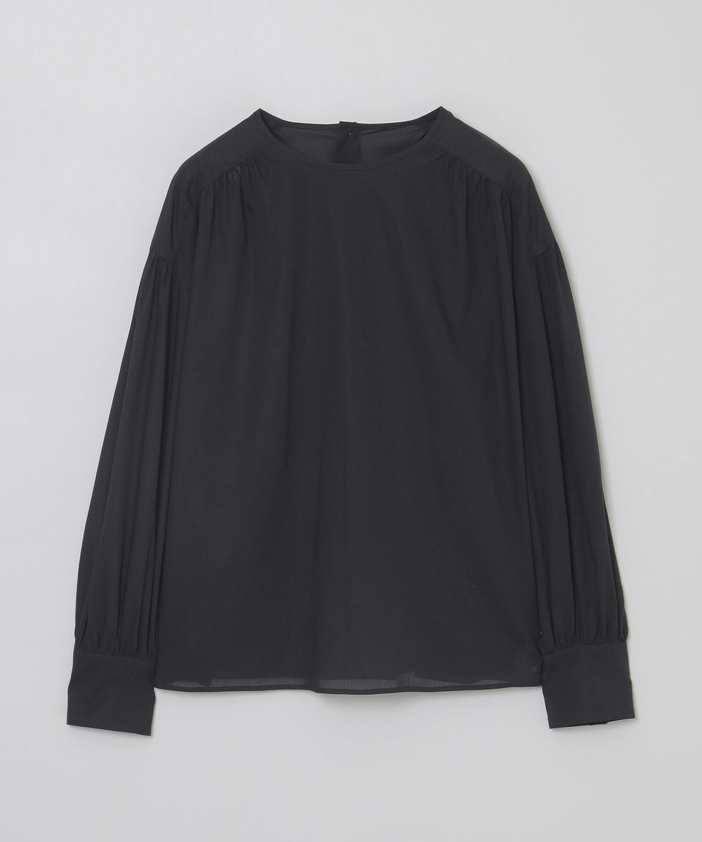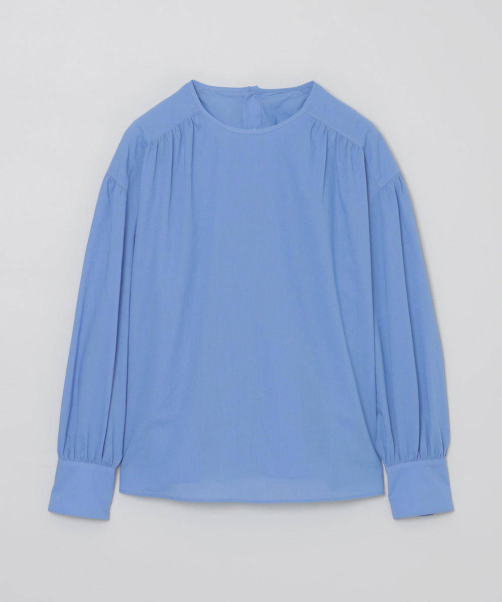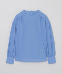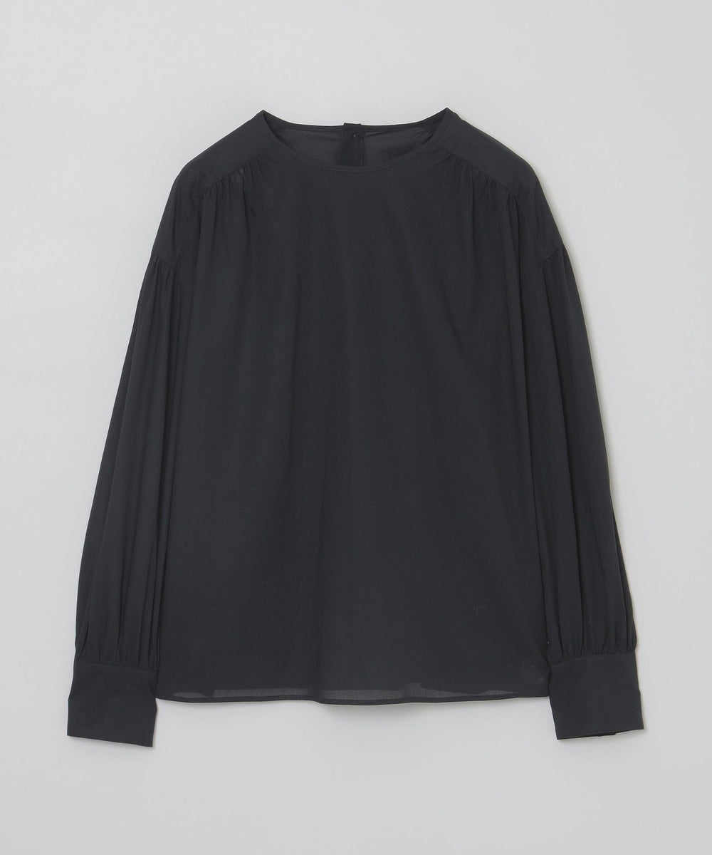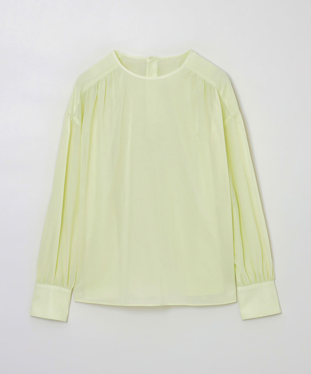 涼しげなシアー感のある素材を使用した、袖のボリュームがポイントのギャザースリーブブラウス。