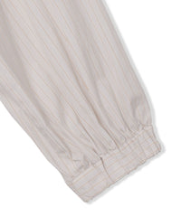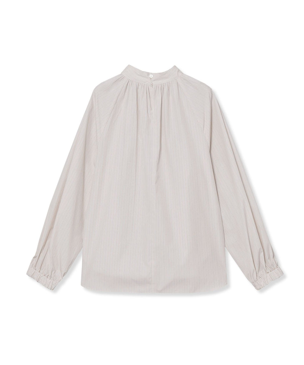 ふんわりと膨らむ袖が特徴的なスタンドブラウス。1枚着でも重ね着としてでも合わせやすく、幅広いシーズンで着回しができるブラウスです。