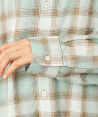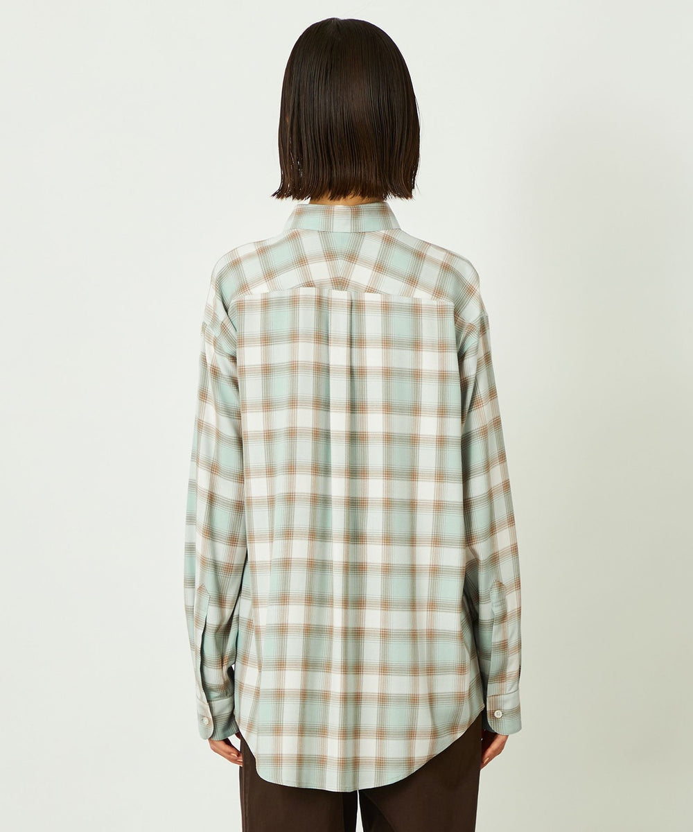 ドレープ感のあるレーヨン素材でオンブレチェックを表現したシャツファブリック。カジュアル過ぎない印象がポイントです。