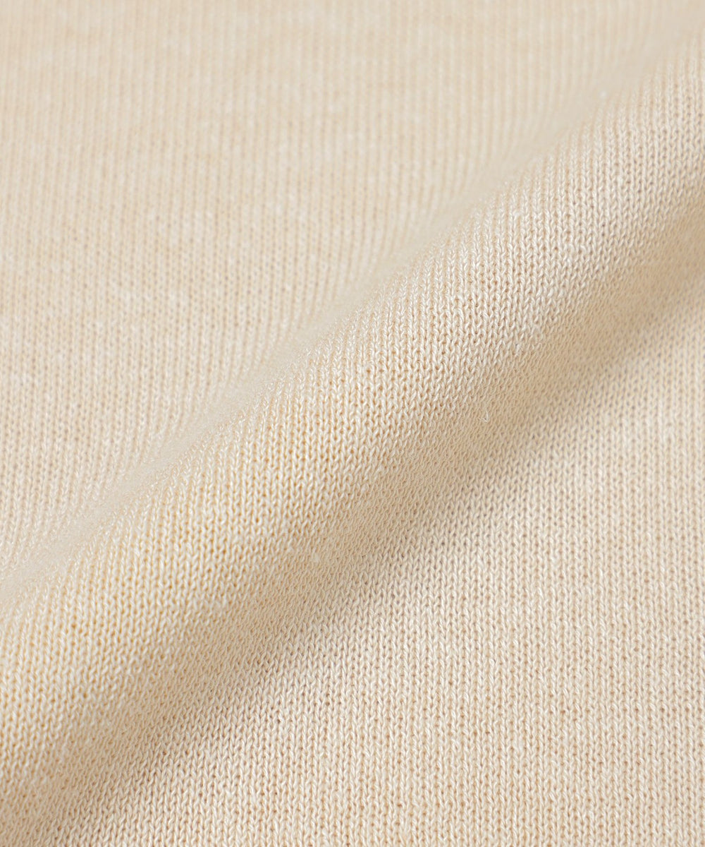 麻のナチュラル感に加え、ポリエステル素材の清涼感を付与しました。麻は天然素材の為、節や毛羽がありキズの様に見える場合がありますが、素材原料の特徴の為ご了承ください。