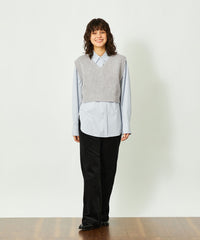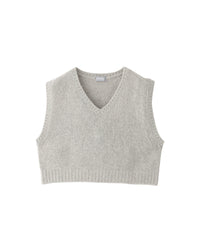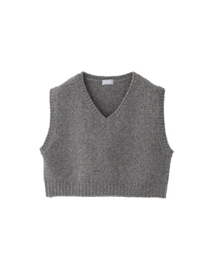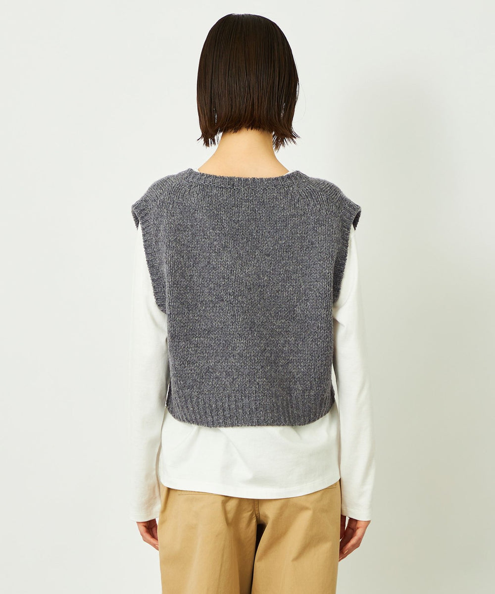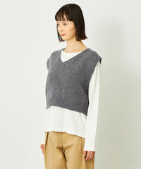 トレンド感のある深Vネックのローゲージショートベスト。ゆとりのある身幅に広く開いたアームホールなので、重ね着もストレスなく楽しめる1枚です。