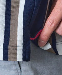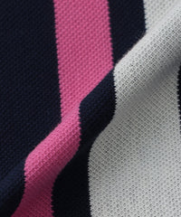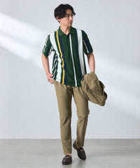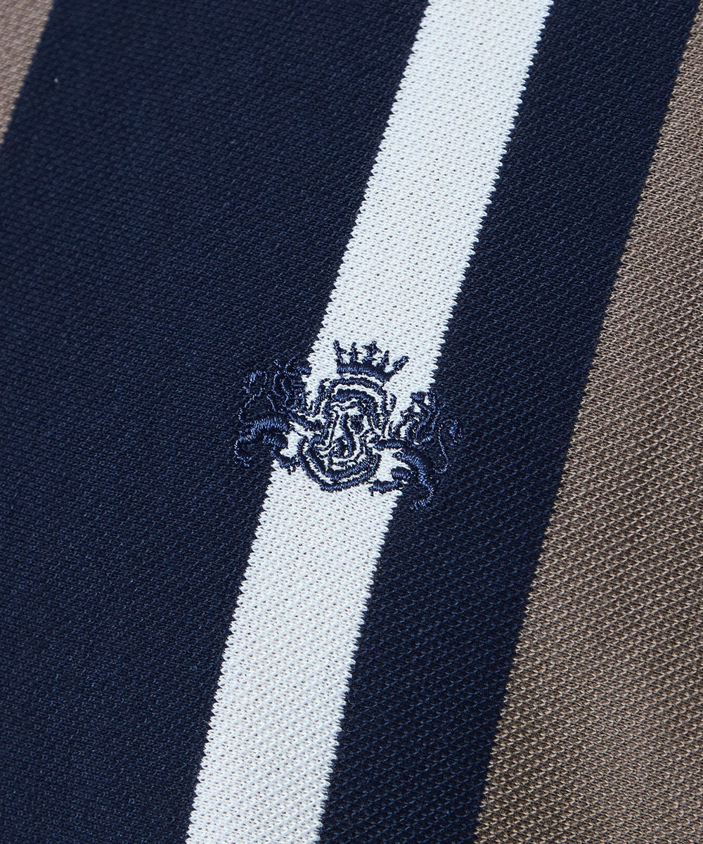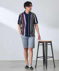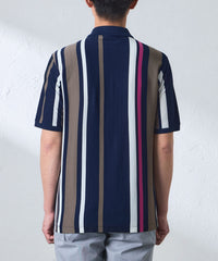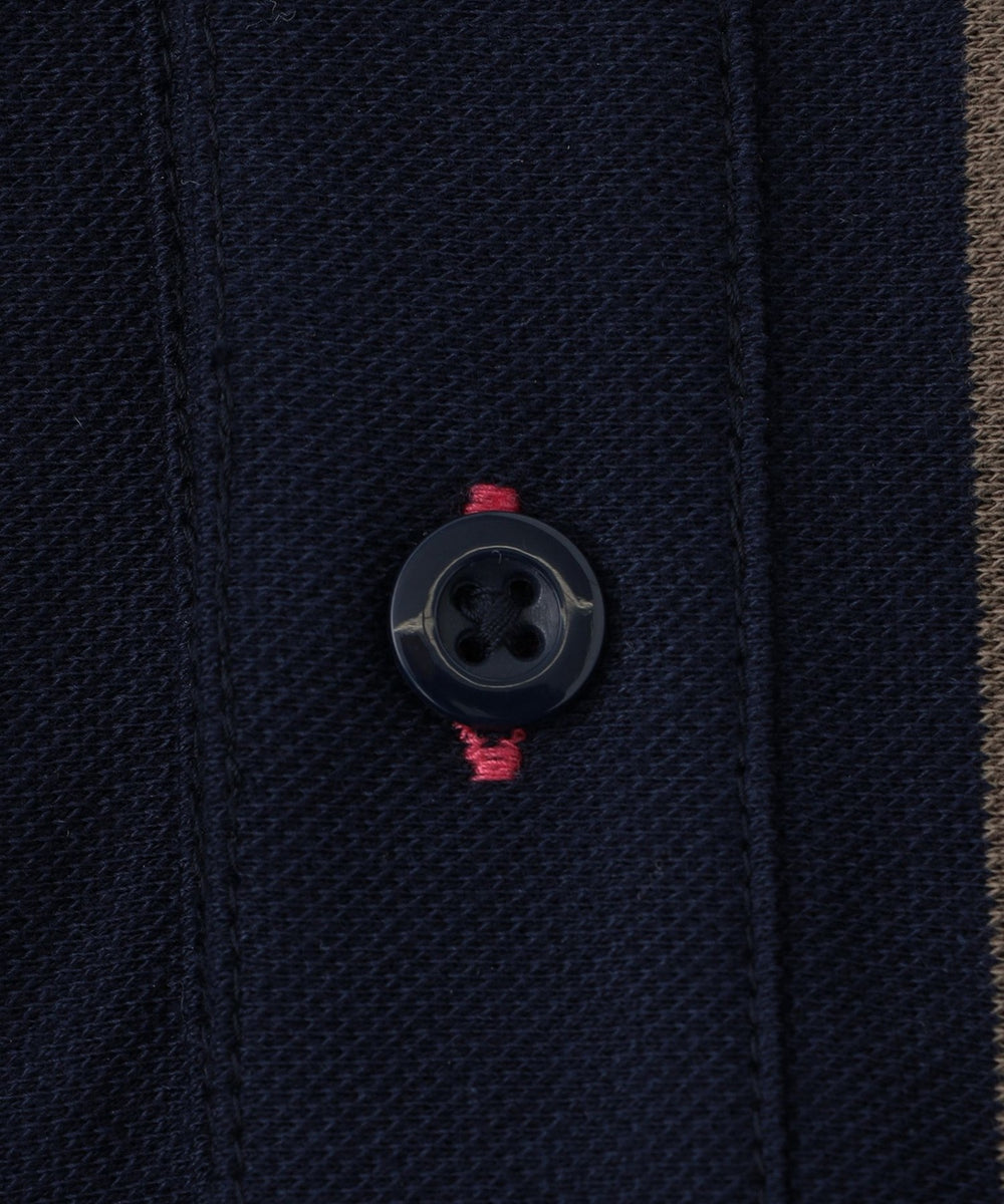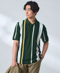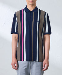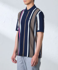 ランダムに組んだボーダー柄を縦使いすることで、大胆な構図のストライプ柄を演出したポロシャツです。