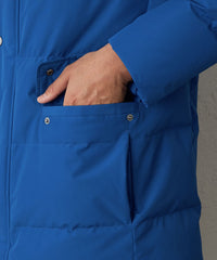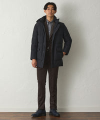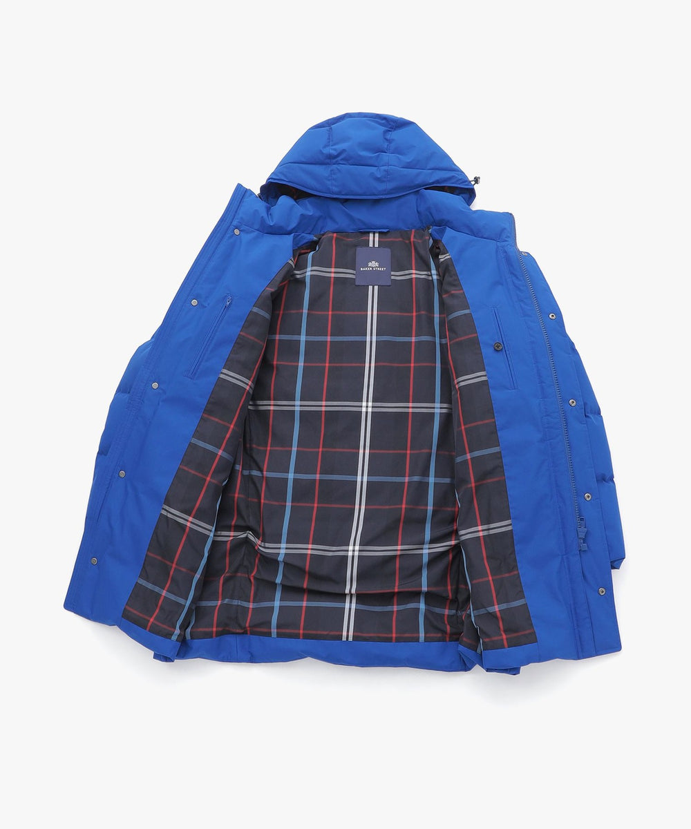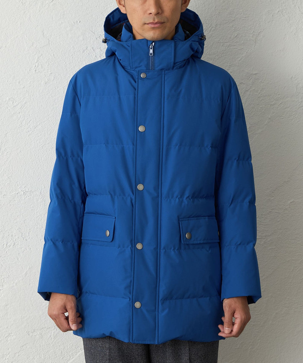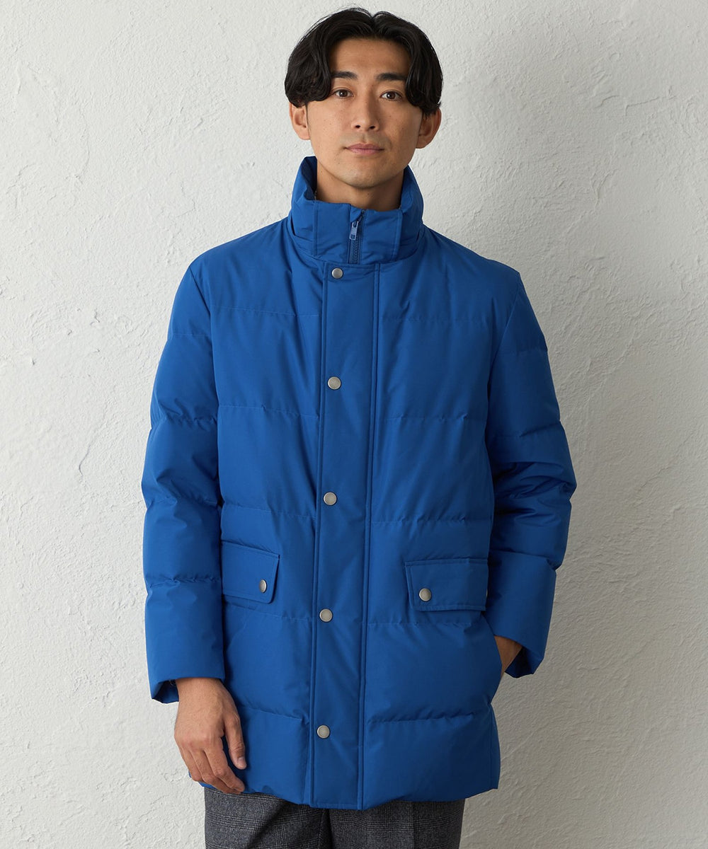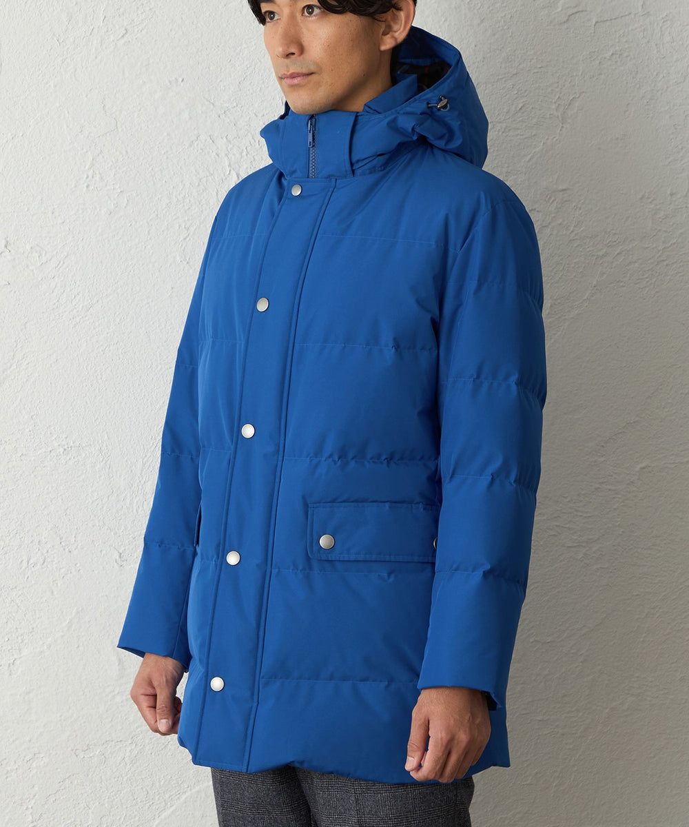無駄な装飾を削ぎ落した3レイヤーポリエステルロングダウンコートです。