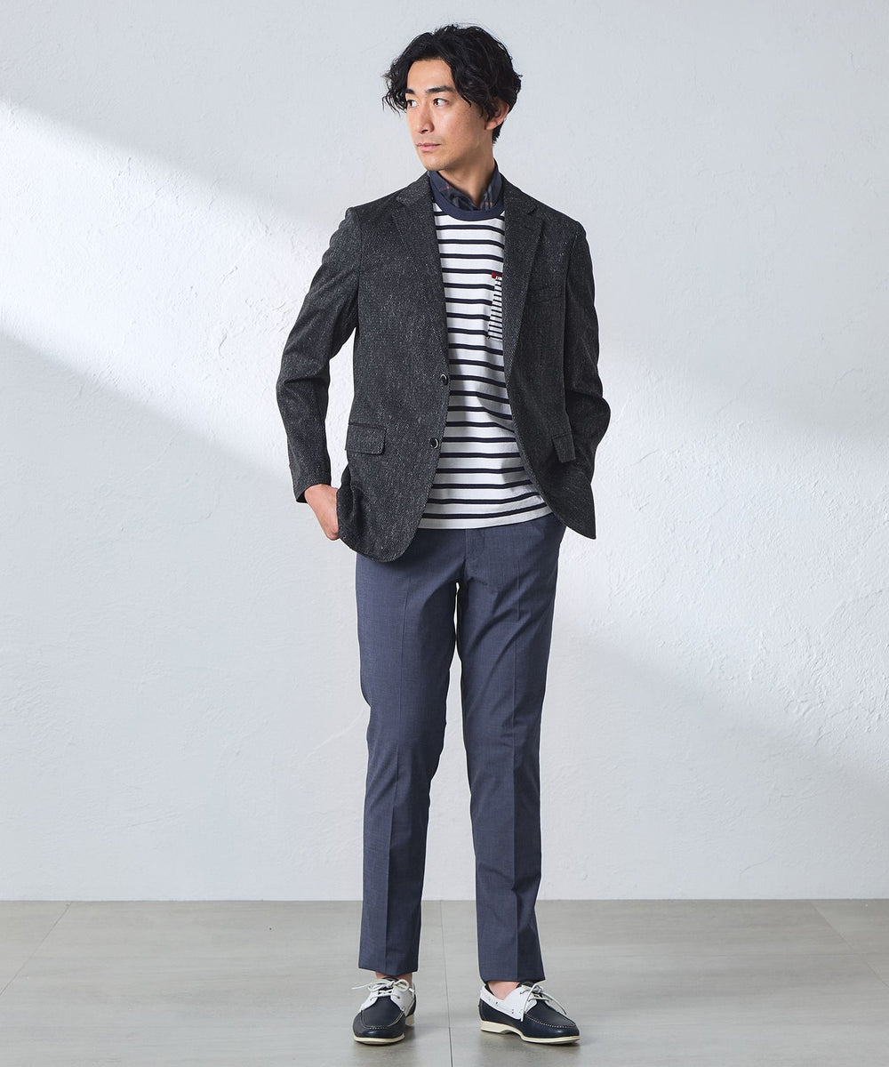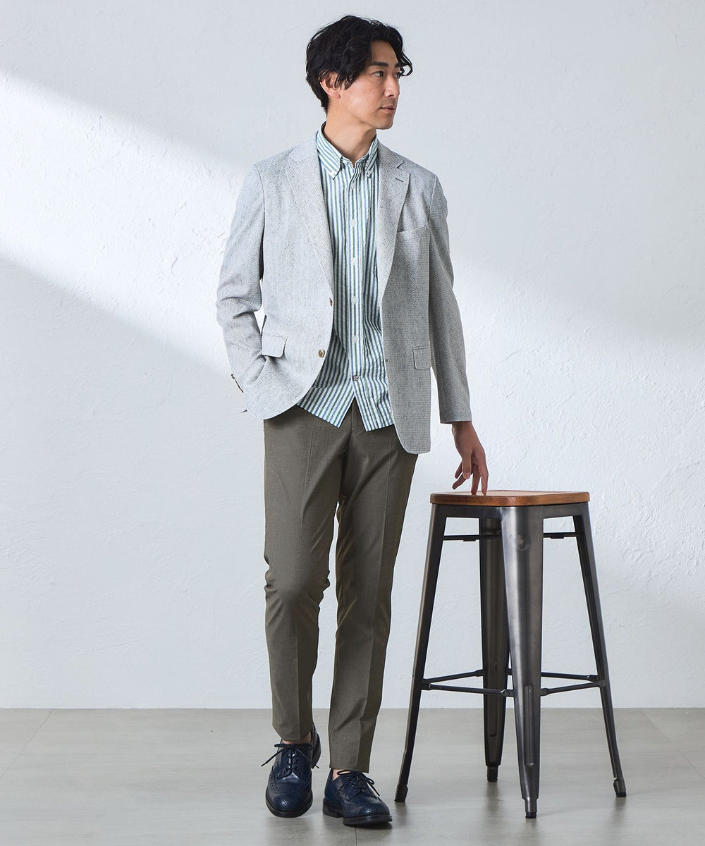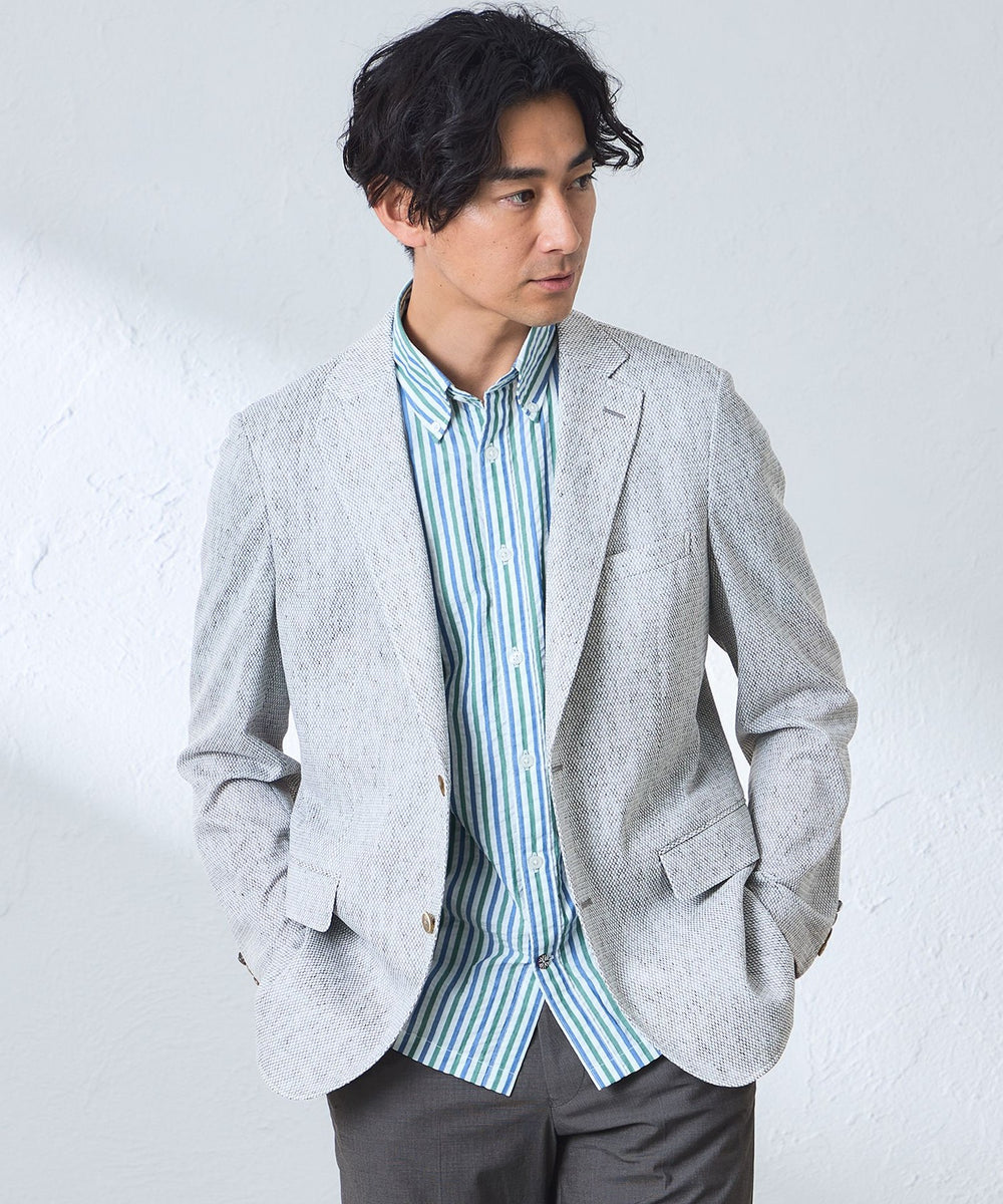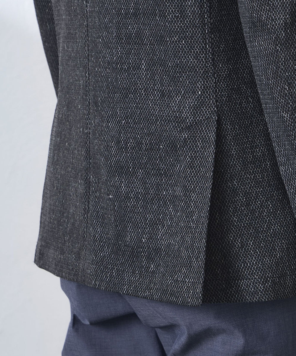 麻・ポリエステル・綿を組み合わせることで、自然な風合いと適度なハリを持たせています。