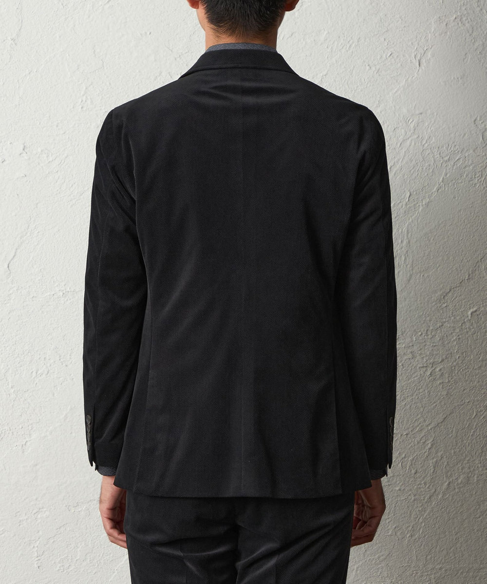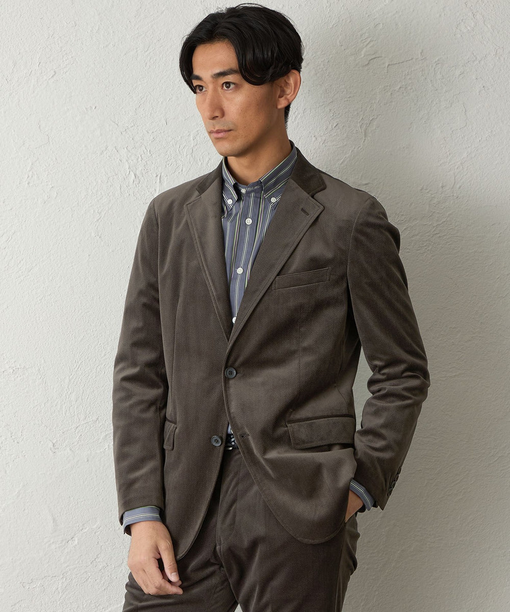 大人な雰囲気漂う艶に仕上げたへリンボーンジャケットです。見た目の印象よりも軽く、日常着のジャケットとして重宝します。
