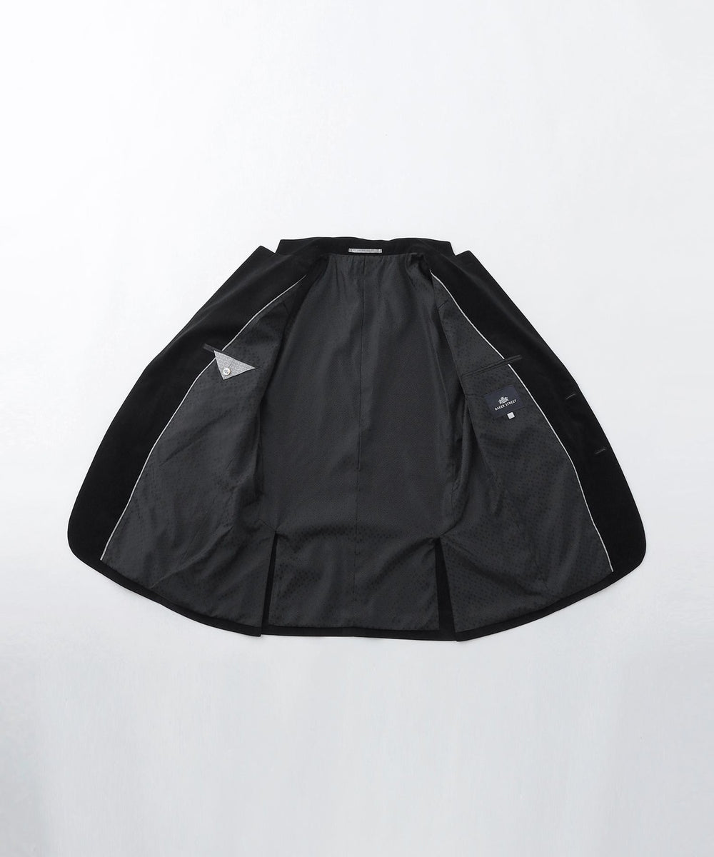 総裏仕様で、身頃裏に上品な表情の細かなドット柄を採用しています。内ポケット布等に光沢のある小紋柄素材を使用することで、裏仕様も艶感のある表情を演出しています。