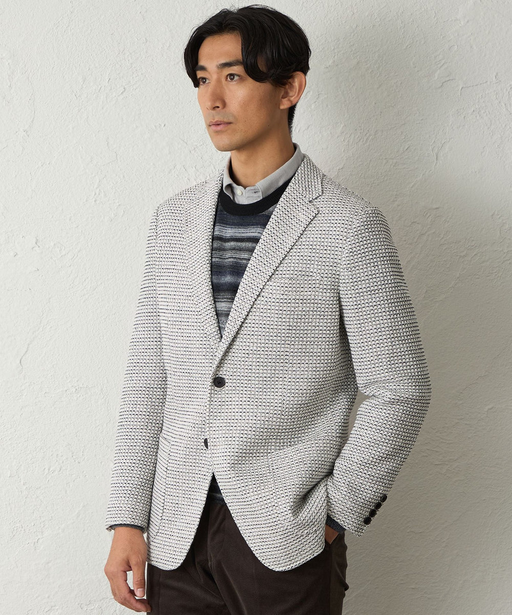 秋から冬のデイリーウェアとして活躍する、気軽に羽織れるニットプリントジャケットです。