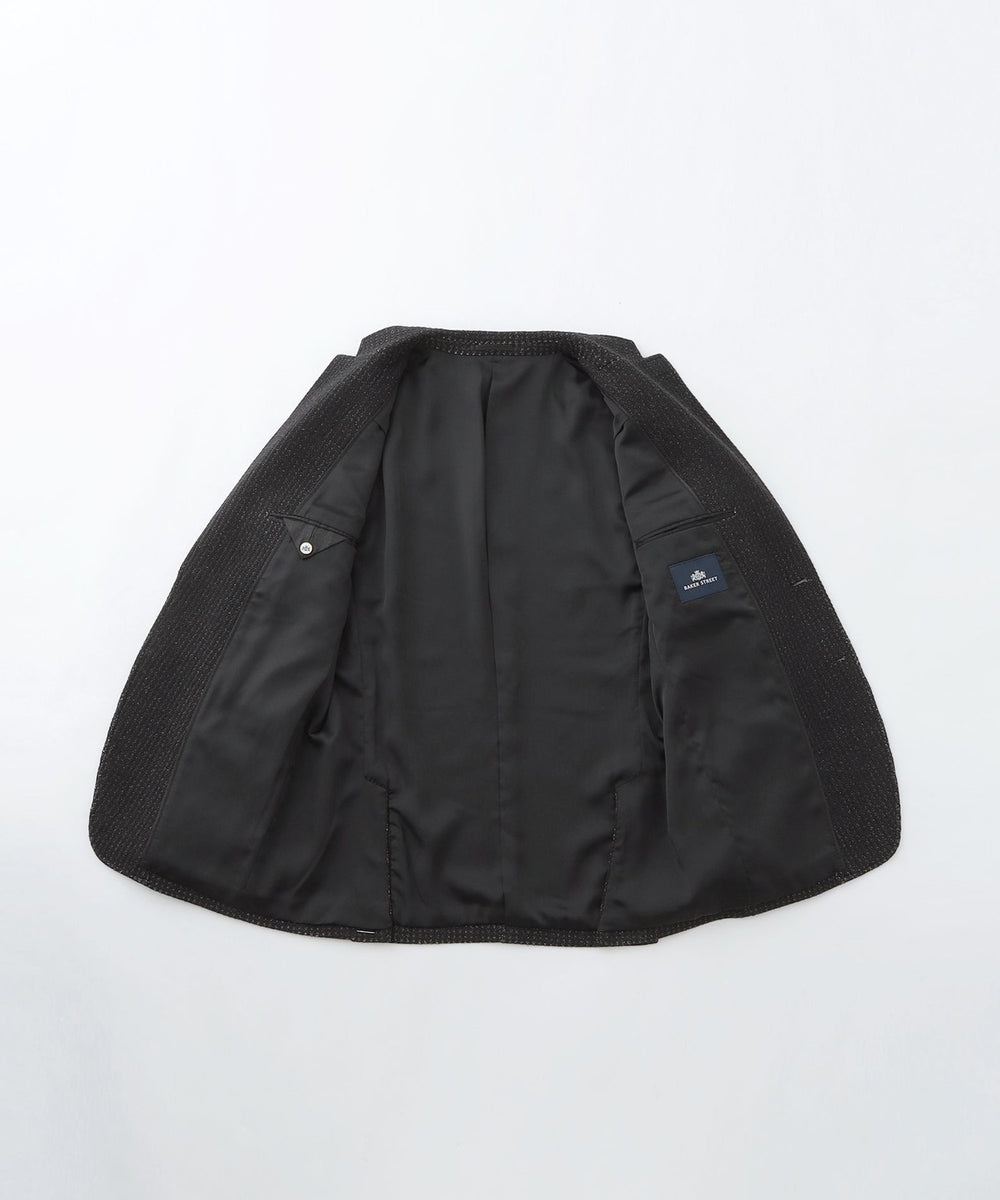 内ポケット布等に光沢のある小紋柄素材を使用し、内胸ポケットにはオリジナルの装飾ボタンを施すなどこだわりのデザインディテールです。